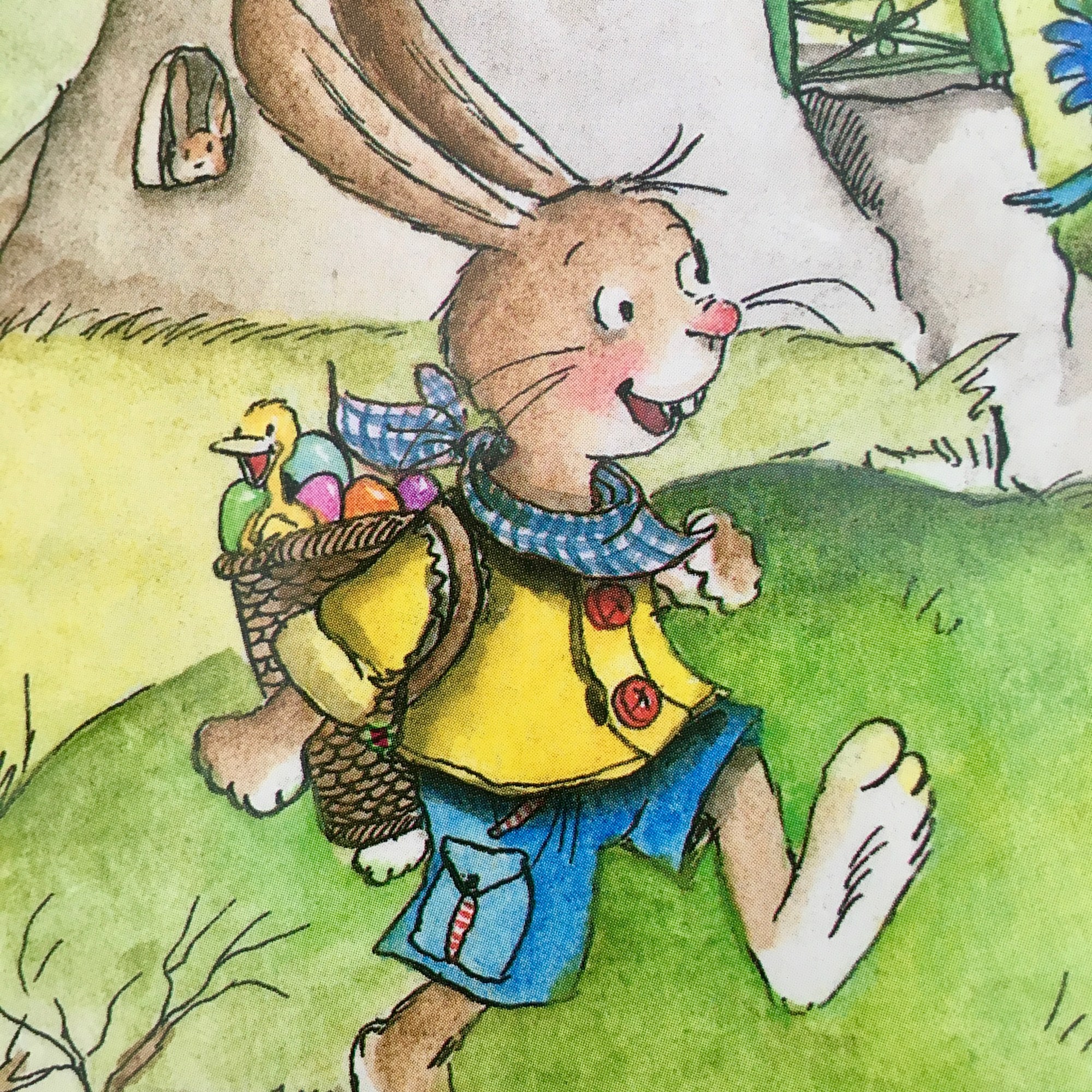 „Stups. der kleine Osterhase, fällt andauernd auf die Nase, ganz egal, wohin er lief, immer ging ihm etwas schief.“