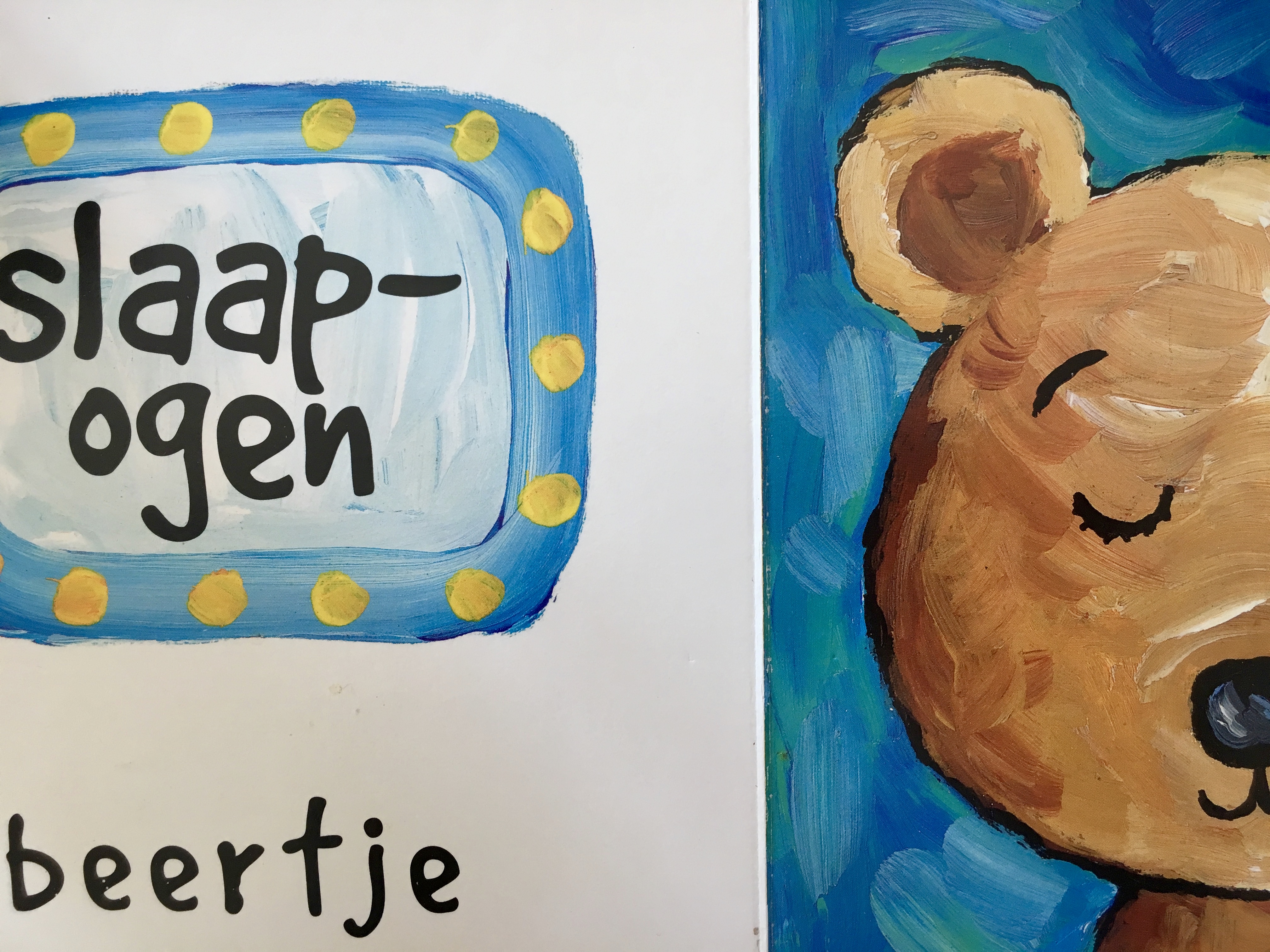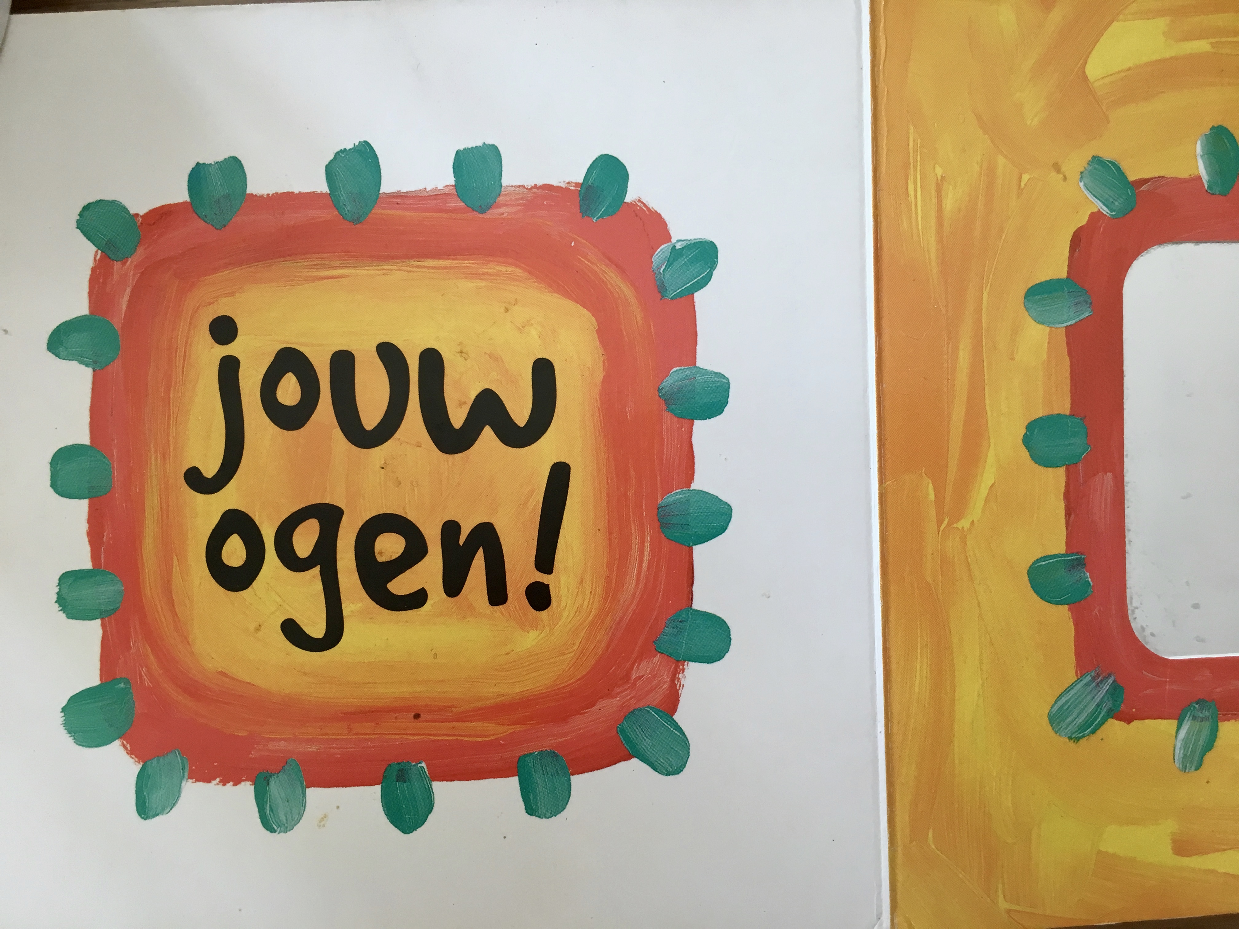 Das Bilderbuch zeigt verschiedene Augen (kleine Augen – Maulwurf, grüne Augen – Katze, große Augen – Eule, weiße Augen – Maus und Schlafaugen – Teddy) und dann kommt der für Kleine tolle Überraschungseffekt: Deine Augen – mit einem kleinen Spiegel. Gerade diese letzte Seite war bei uns heiß geliebt, deswegen wollte ich es hier auch unbedingt vorstellen. Niederländisches Buch hin oder her. 🙂