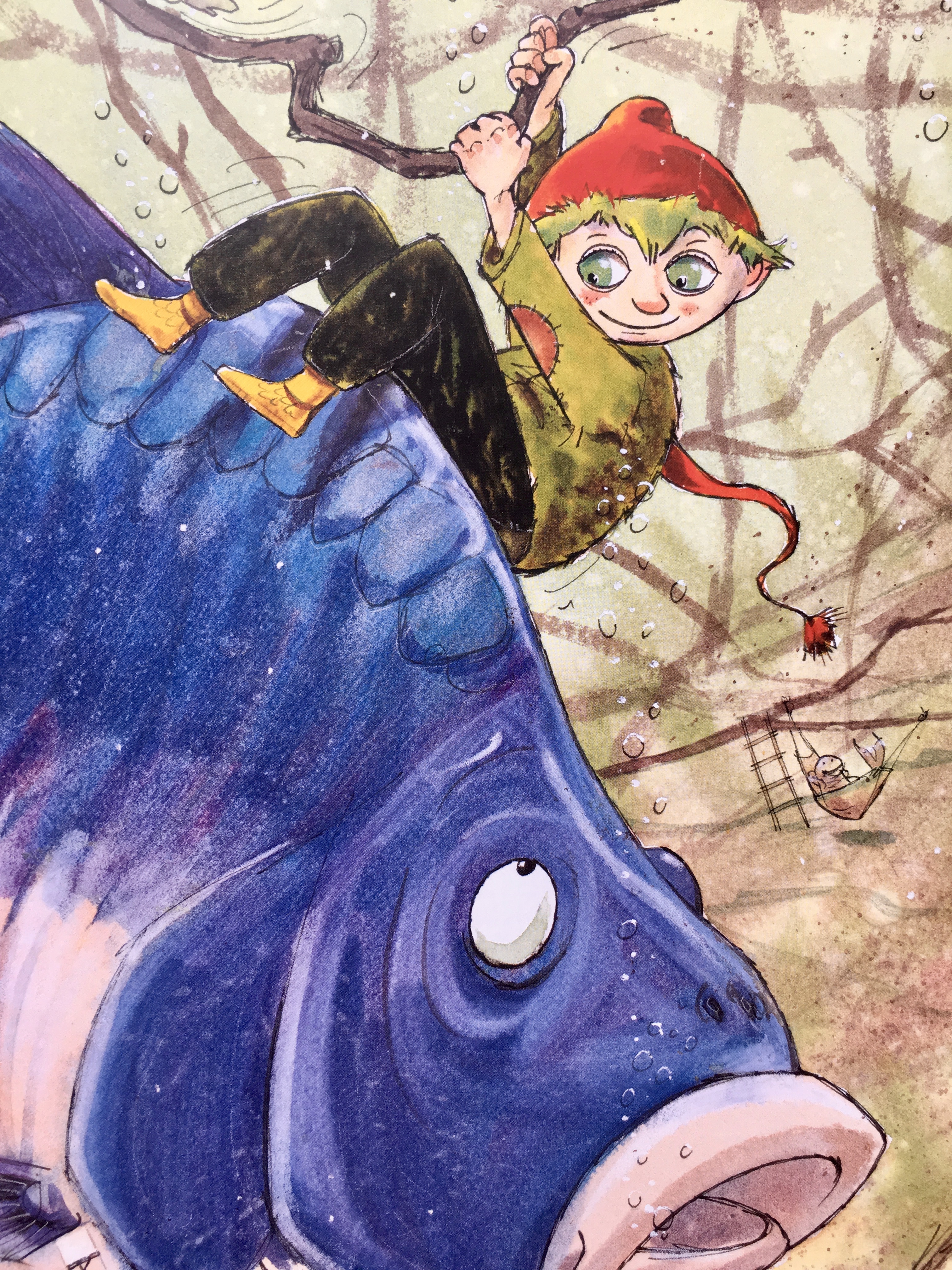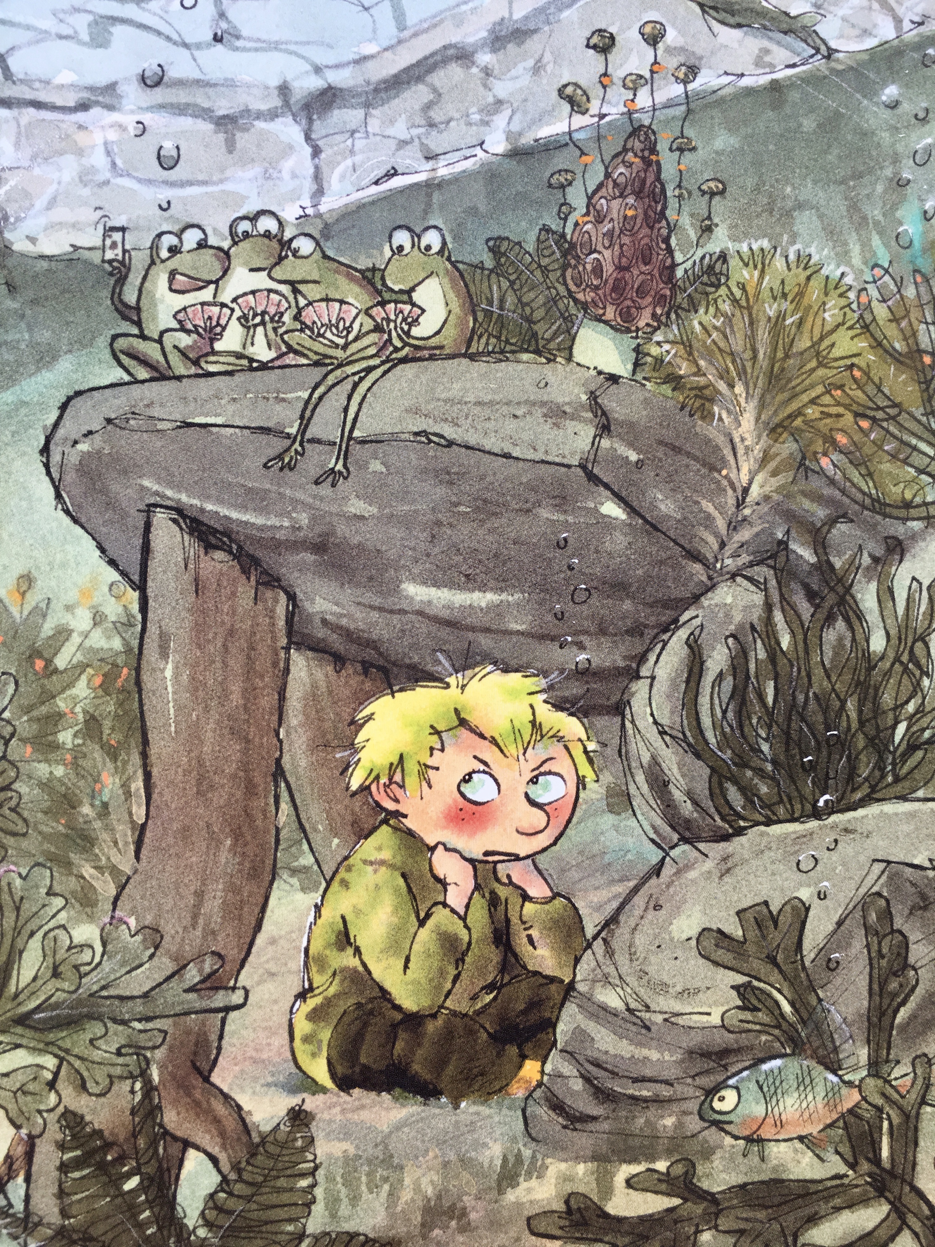 Die wunderbaren, großformatigen Bilder entführen die Kinder in die phantasievolle Welt des kleinen Wassermanns. Es gibt dabei viel zu entdecken. Die Tiere sind auf vielen Seiten bei – nun sagen wir – ungewöhnlichen Aktivitäten zu Sehen: Frösche, die Karten spielen, Singen oder eine Räuberleiter bilden sowie malende Käfer, Gold suchende Echsen, Rennschnecken, Fische, die an einer Ampel warten oder fegende Eichhörnchen.