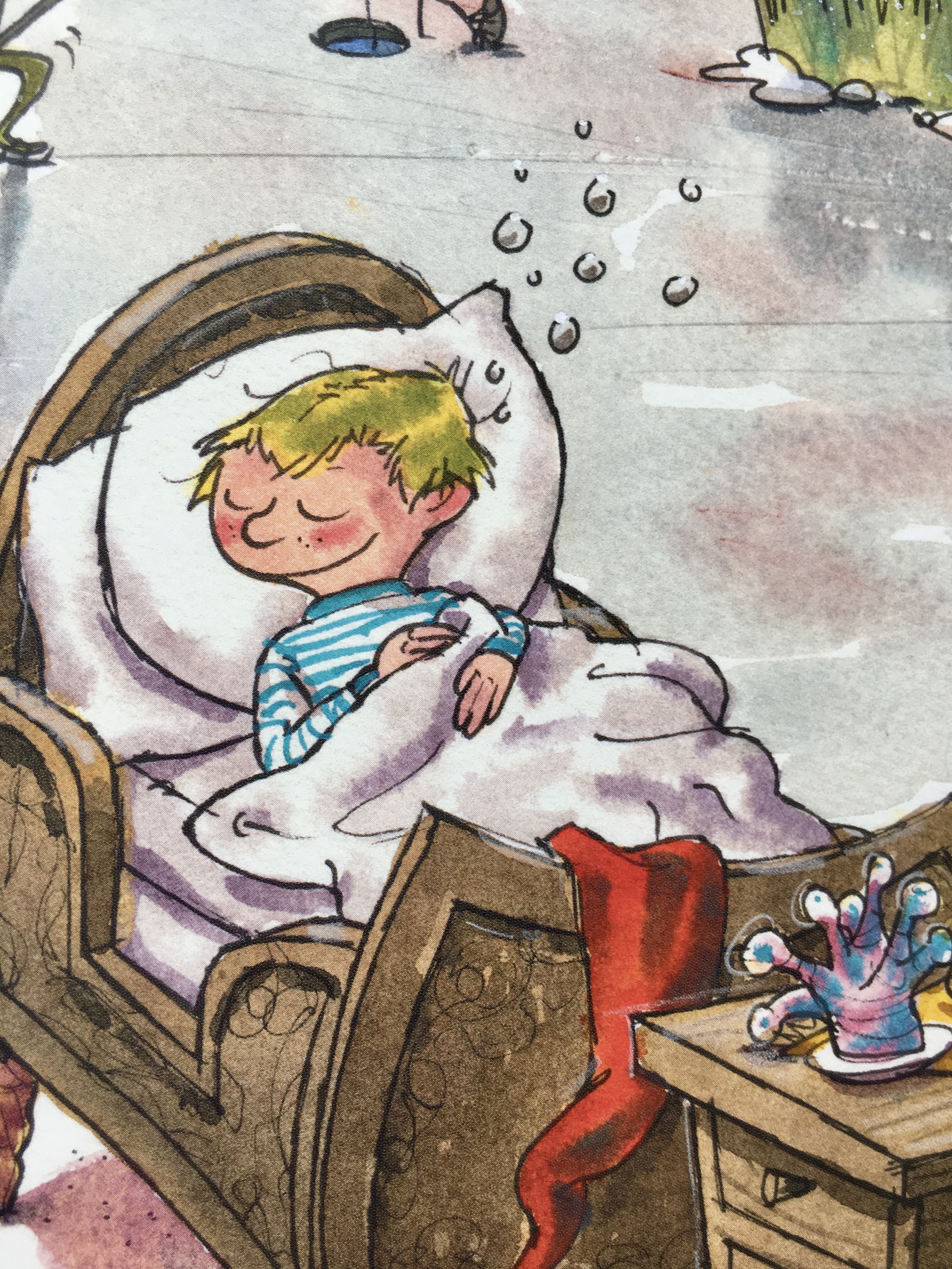 In dem sich der kleine Wassermann und seine Eltern in den Betten gemütlich machen und bis zum nächsten Frühling Winterschlaf halten.