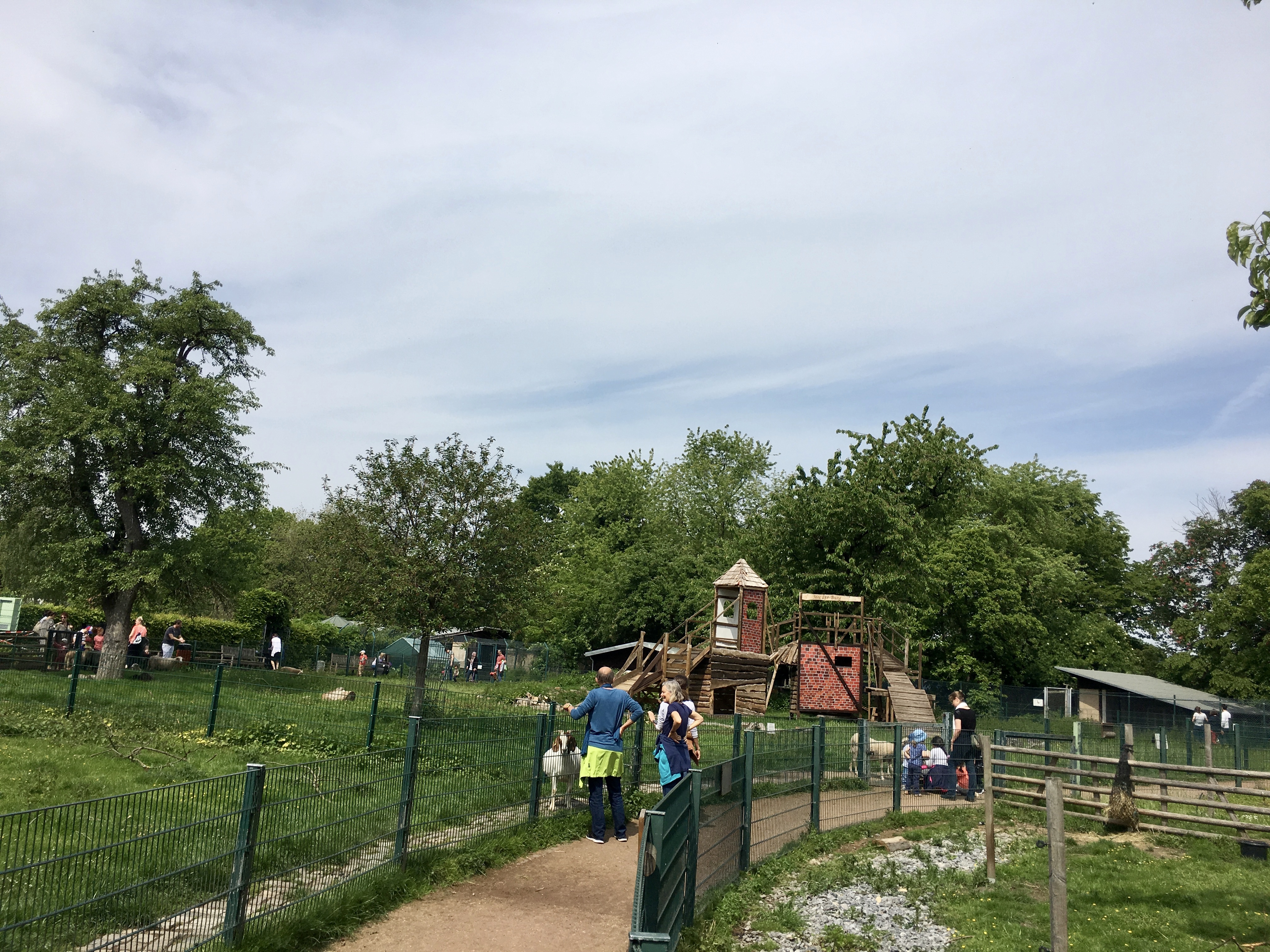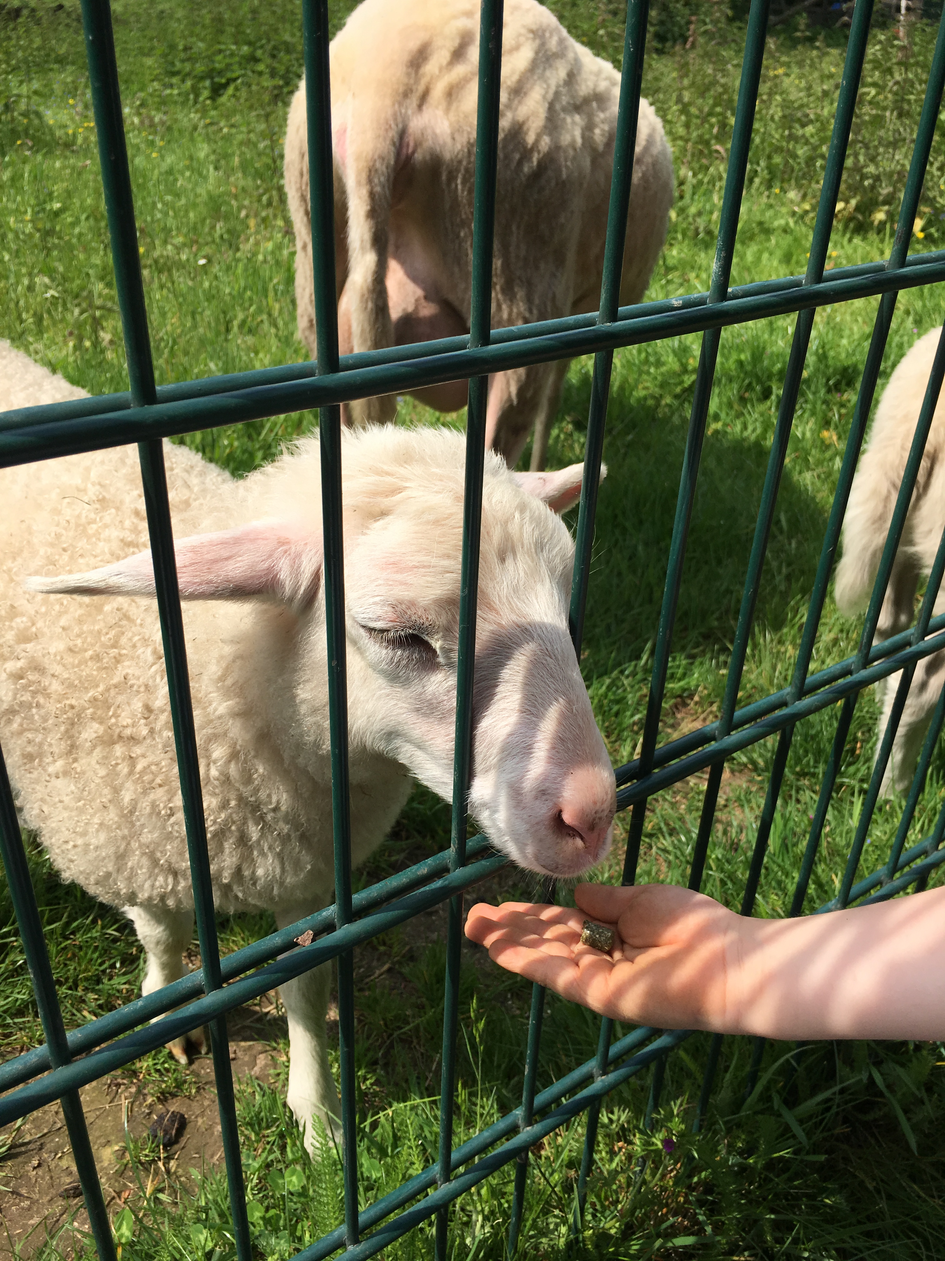 Ein paar Meter neben dem Café können Tiere gestreichelt und mit dem dort angebotenen Futter (Packung 1 Euro) gefüttert werden. Es gibt beispielsweise Hausschweine, Ziegen, Hasen, Esel, Schafe ein Bienenhaus und Gänse. Neben den Tiergehegen befindet sich ein schöner Bauern- und Kräutergarten.