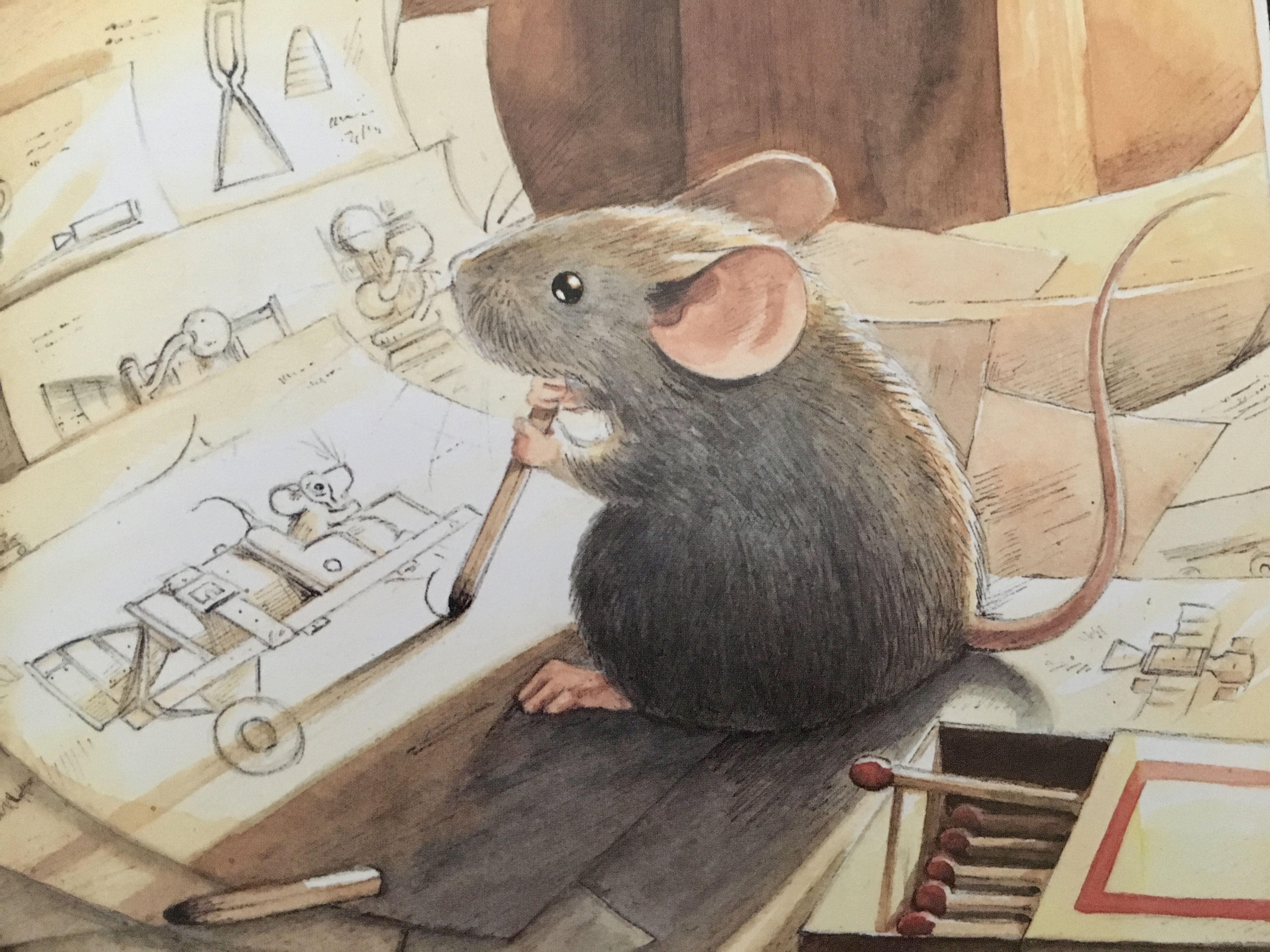 Die Geschichte der Mondmaus beginnt auf einem Dachboden. Dort beobachtet die Maus durch ein Teleskop den Mond. Sie findet heraus, dass der Mond eine Kugel aus Stein ist, aber das wollen die anderen Mäuse nicht glauben, denn für sie ist der Mond ein Käse. Angeregt durch einen Besuch in dem Mäuseflugmaschinen-Museum und den Erzählungen der alten, grauen Maus beschließt sie: ‚Ich werde die erste Maus auf dem Mond sein!‘. Sie studiert das Wissen der Menschen und beginnt eine Raumfähre zu konstruieren. Nach einigen Rückschlägen werden die Menschen auf sie aufmerksam und versuchen, die Raumfahrermaus zu finden. Diese wagt einen letzten Versuch und schafft es tatsächlich mit der Rakete zum Mond zu fliegen. Als die Maus wieder auf die Erde zurückkehrt wird sie von den anderen Mäusen begeistert empfangen. Und so kam es, dass nicht der Mensch Armstrong, sondern eine Maus, genannt Armstrong, als erstes Lebewesen auf dem Mond war.