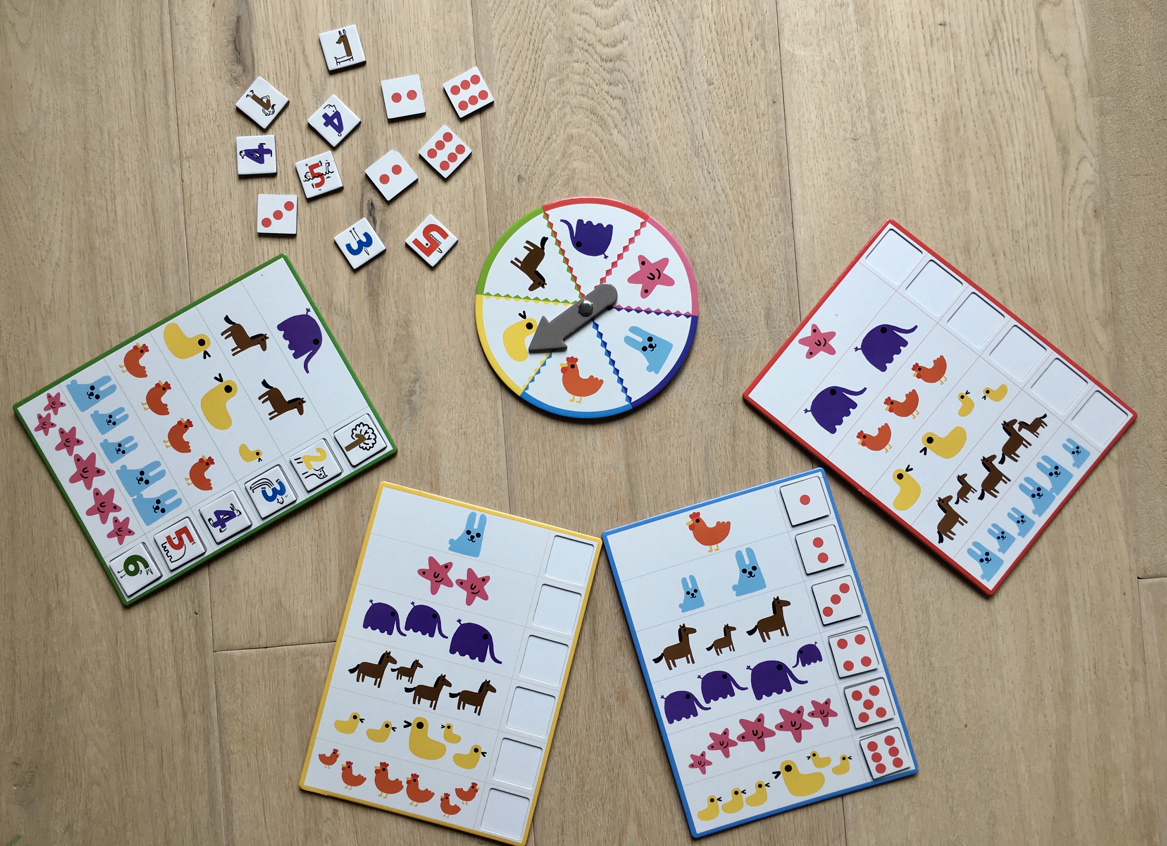 Jeder Spieler bekommt eine Karte mit Tieren in unterschiedlicher Anzahl. Nacheinander wird das Rad gedreht. Je nachdem, bei welchem Tier der Zeiger hält, kann sich der Spieler die entsprechende Zahl aussuchen und auf seine Karte legen. Dabei kann je nach Wissensstand der Kinder, die Seite mit der numerischen Zahl oder die Seite mit den Würfelaugen genutzt werden. Wer zuerst alle Felder (also alle Zahlen von 1 bis 6) erspielt hat, hat gewonnen.