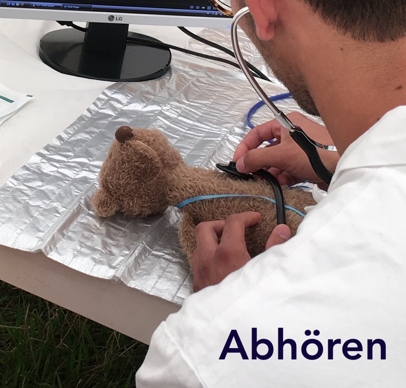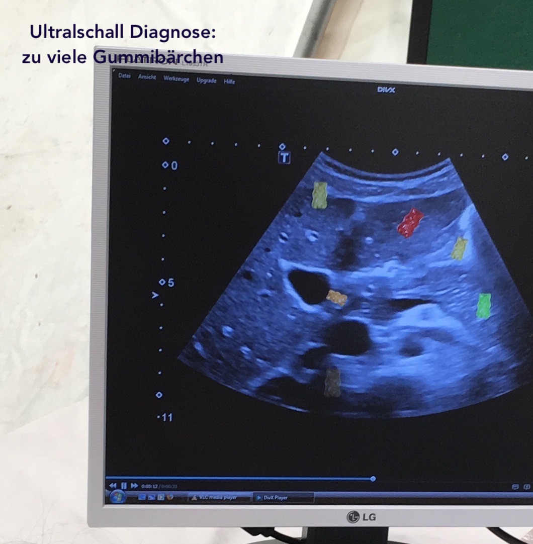 Je nach Art der Krankheit beginnt eine ausführliche Untersuchung. Zum Beispiel mit dem Stethoskop. Beim Ultraschall ist die Diagnose einfach: Zu viele Gummibärchen im Bauch…