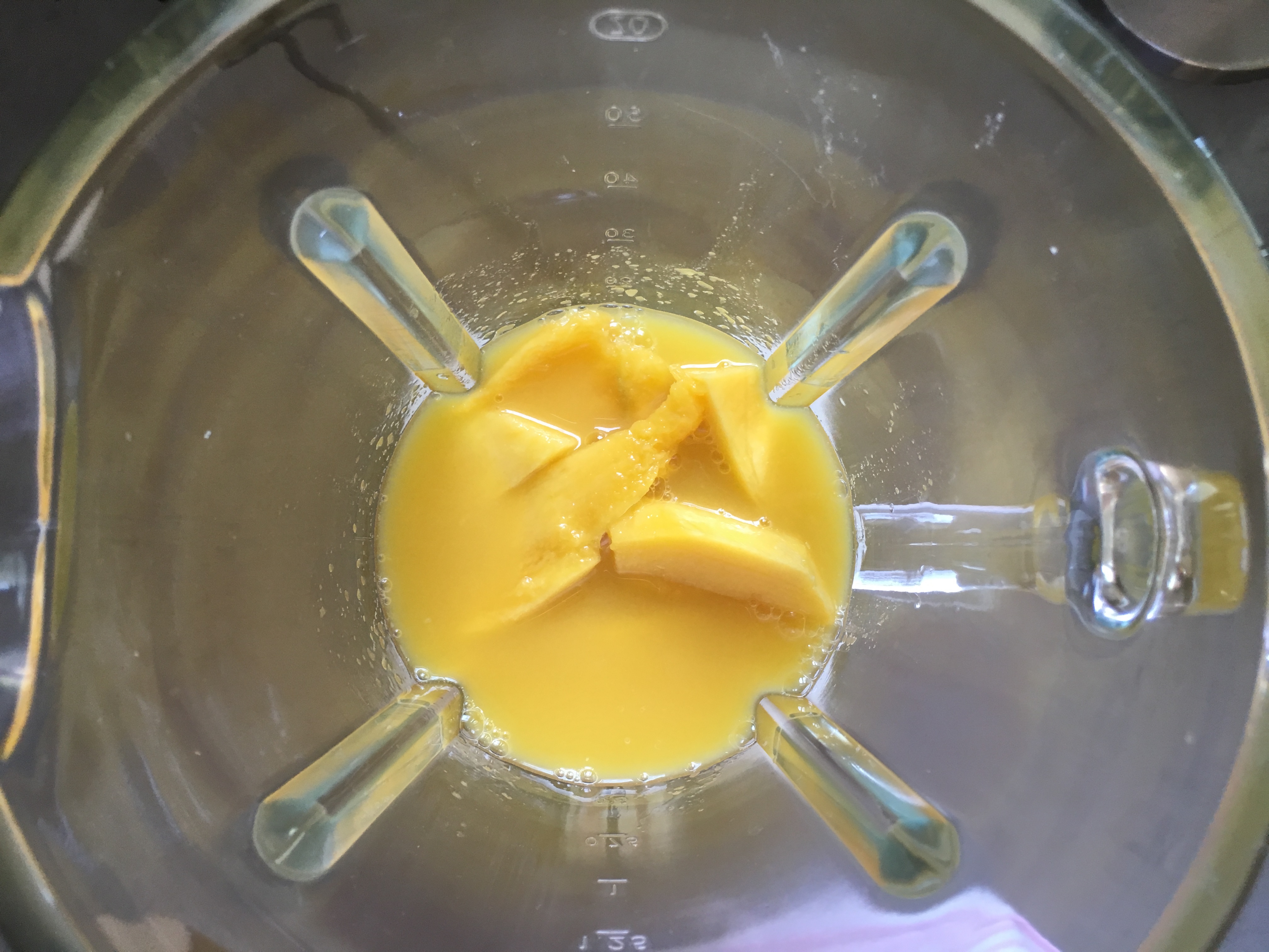 1. Eine Mango schälen und in den Mixer geben