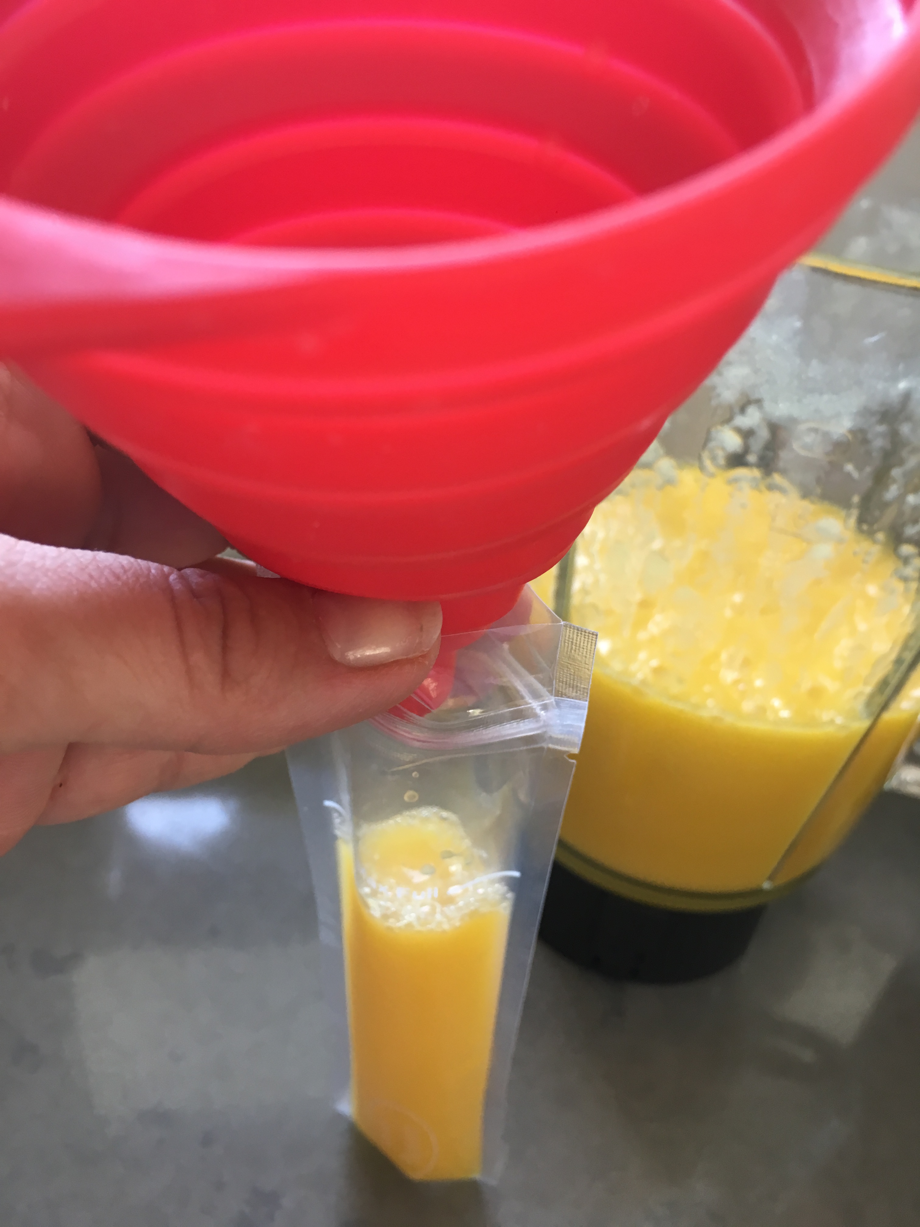1. Saft in eine Eis-Tüte* füllen