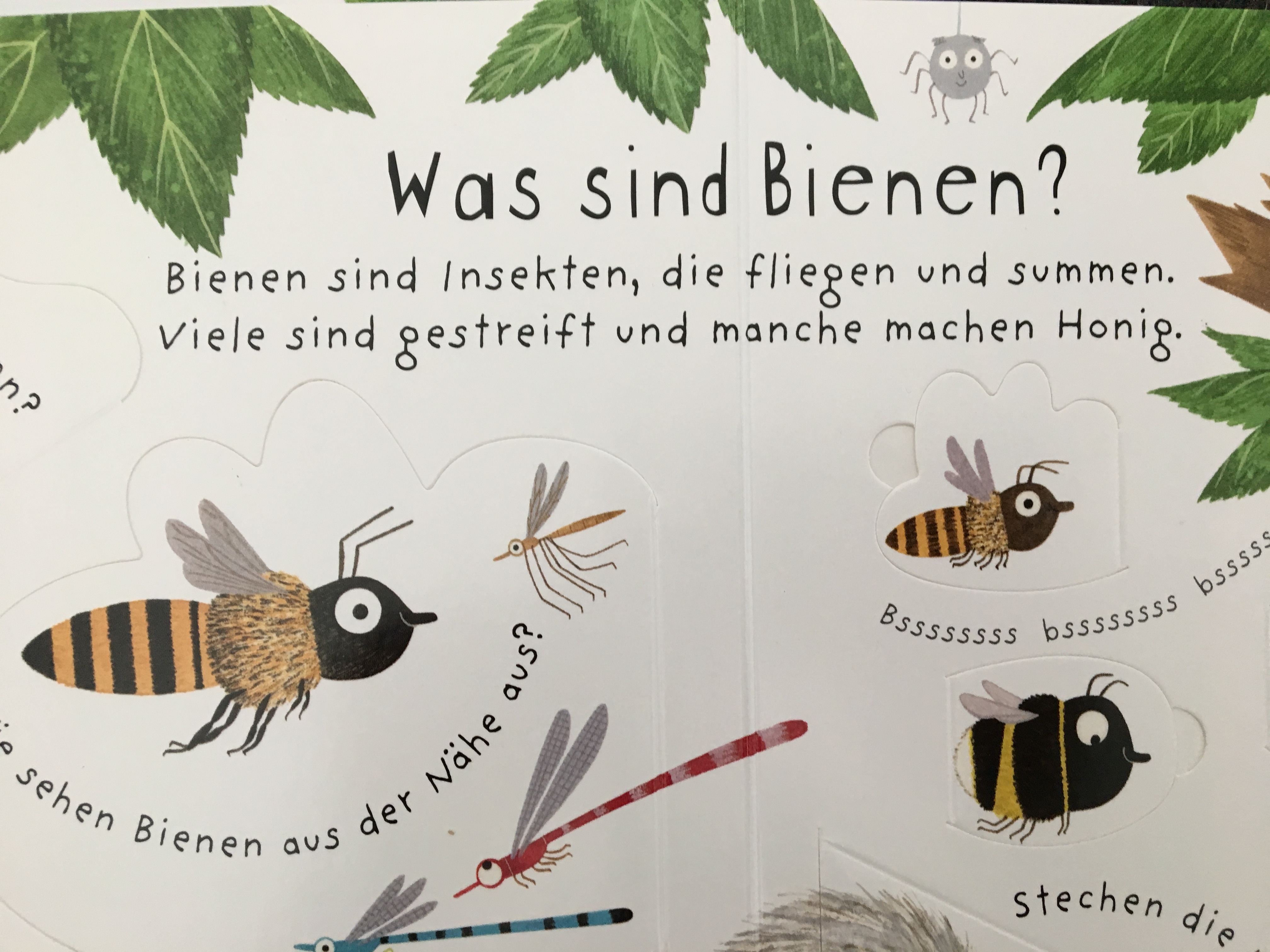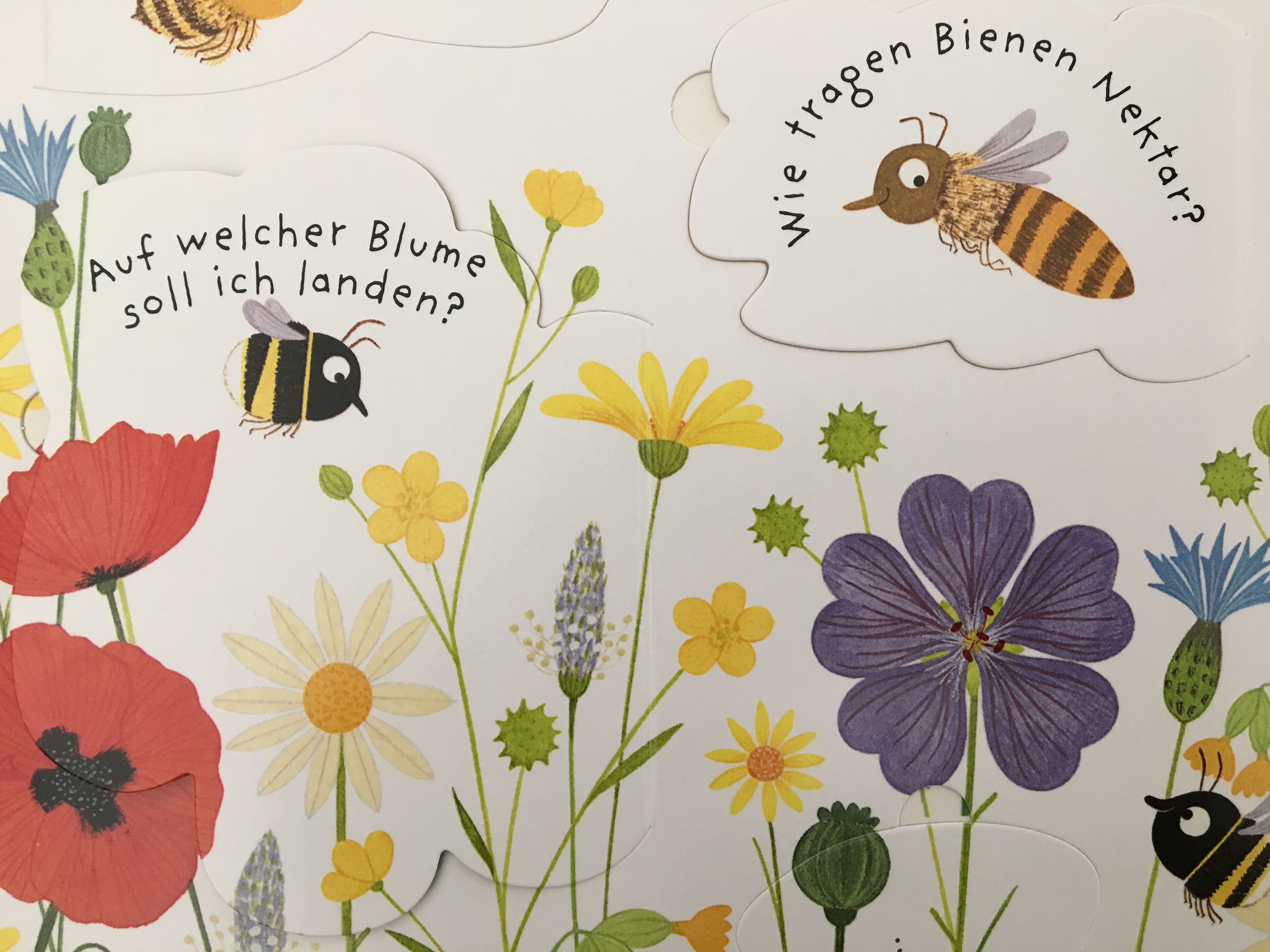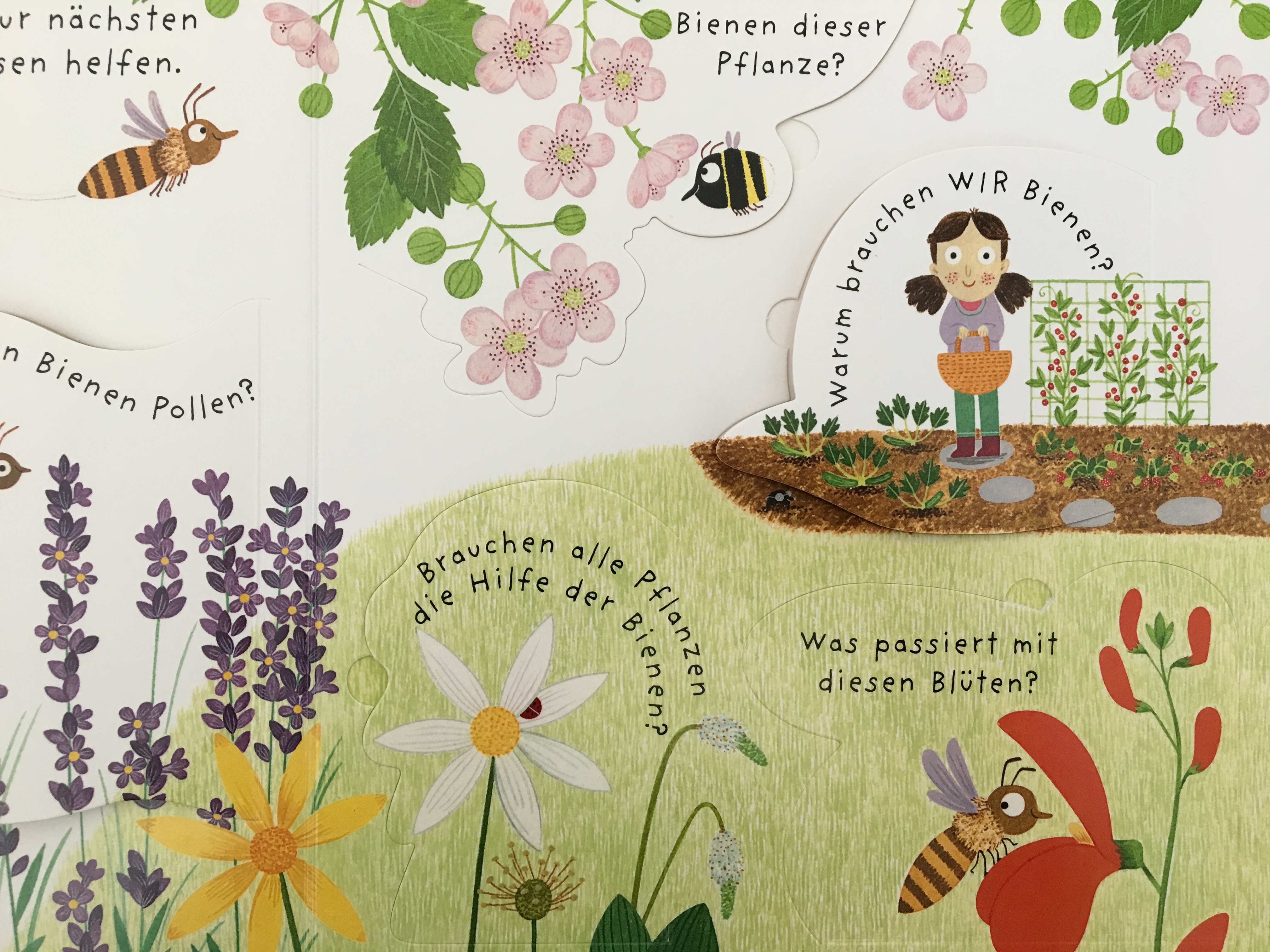 Das schöne Klappbuch vermittelt kleinen Kindern spielerisch und in einfachen kurzen Texten viel Wissenswertes über Bienen: Warum Bienen wichtig sind, warum wir Bienen brauchen, wo Bienen leben, wie Bienen Honig machen, wie ein Bienenstock aufgebaut ist und Erstaunliches über Bienen. Dabei gibt es auch Interessantes für Erwachsene – oder wusstet ihr, dass es Bienen schon seit der Zeit der Dinosaurier gibt?