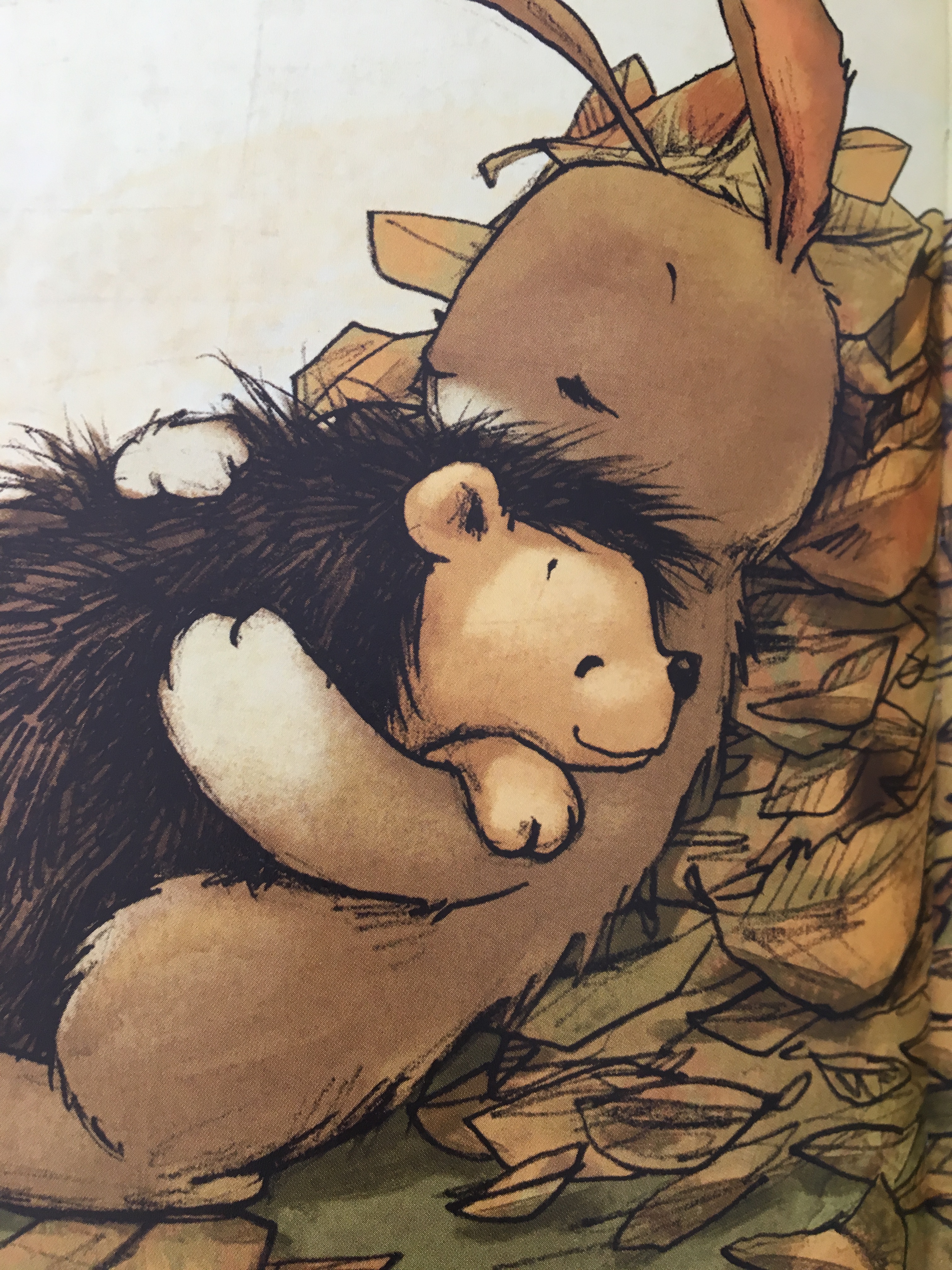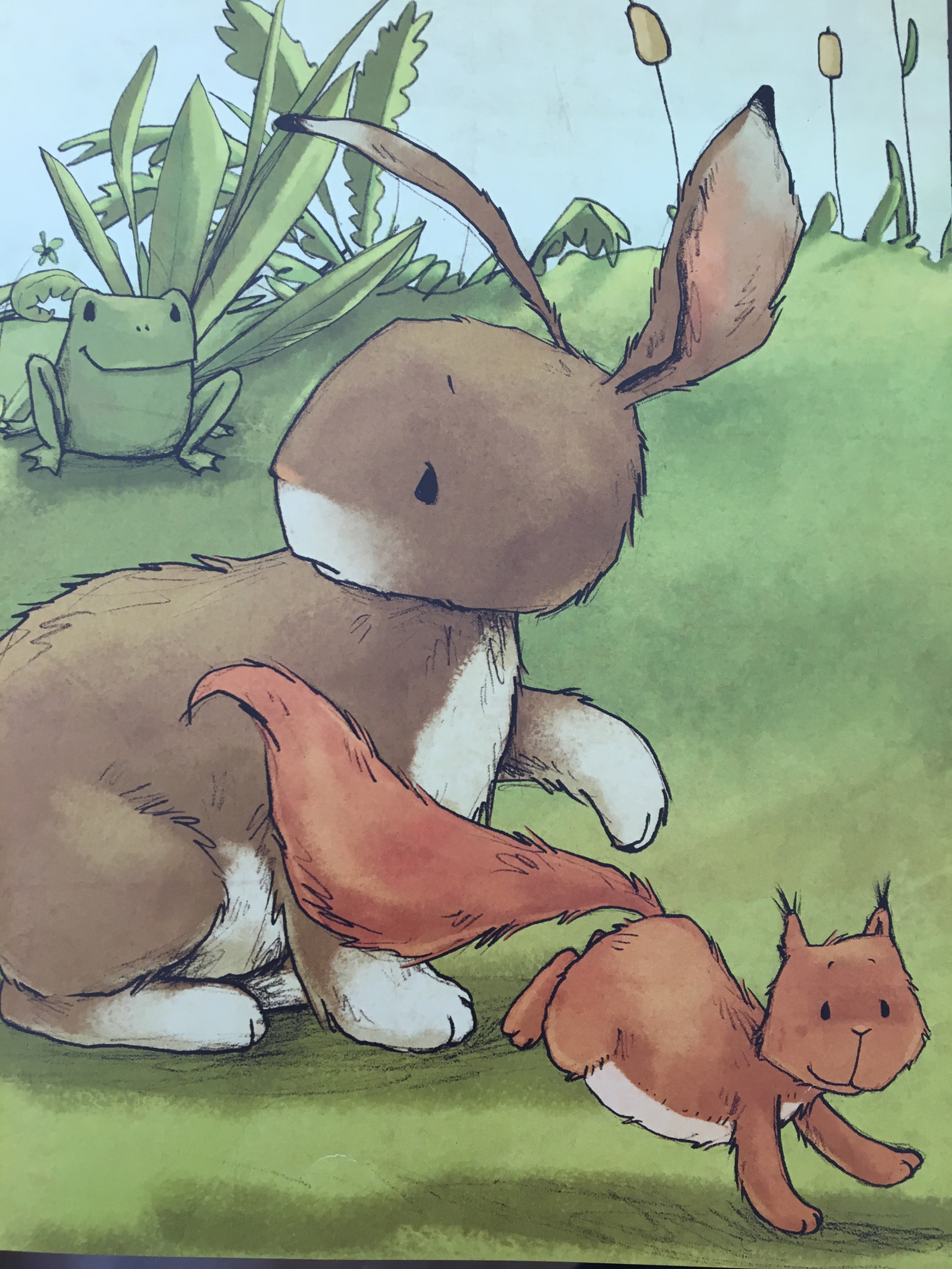 Am nächsten Tag sucht er den Hasen, um ihm gehörig die Meinung zu sagen und – findet ihn verängstigt auf einem Baum. Dort hatte ihn das Eichhörnchen am Abend vorher zurück gelassen. Der Igel vergass seinen Ärger und half dem Hasen herunter und beide waren wieder die besten Freunde.
