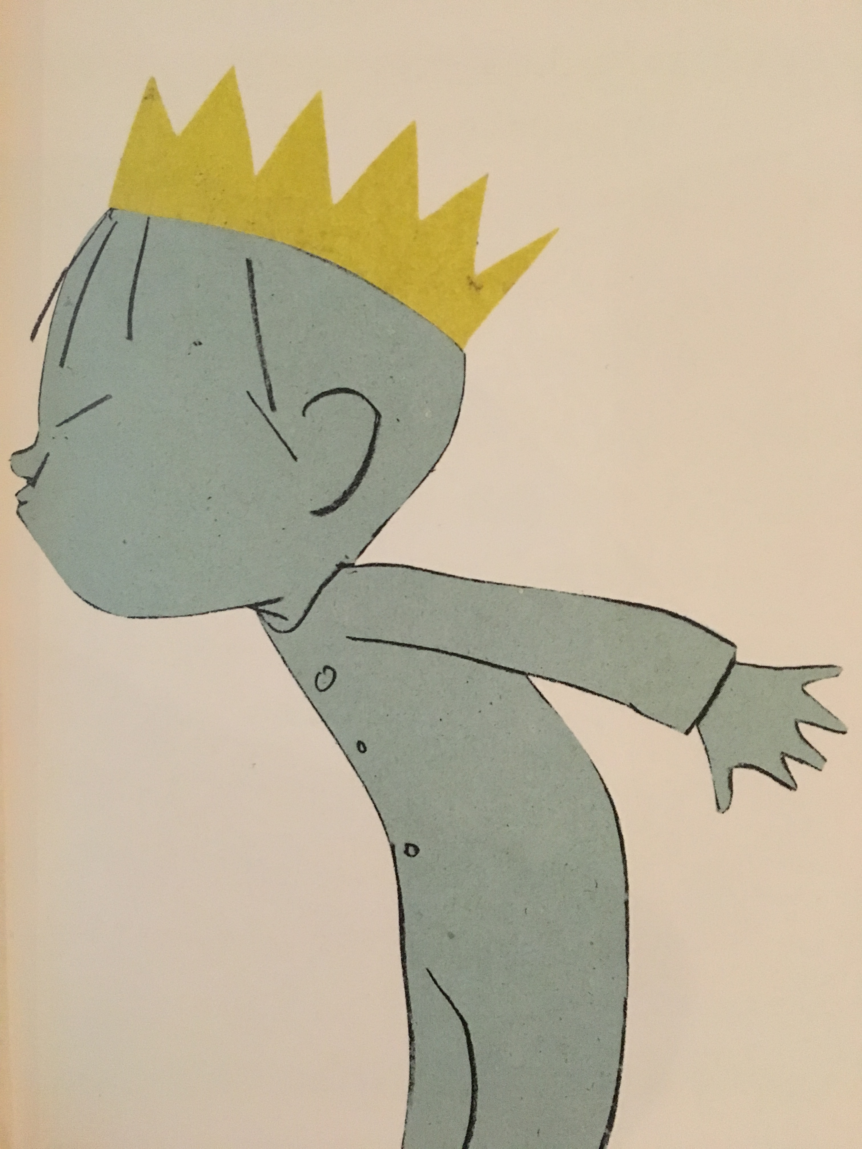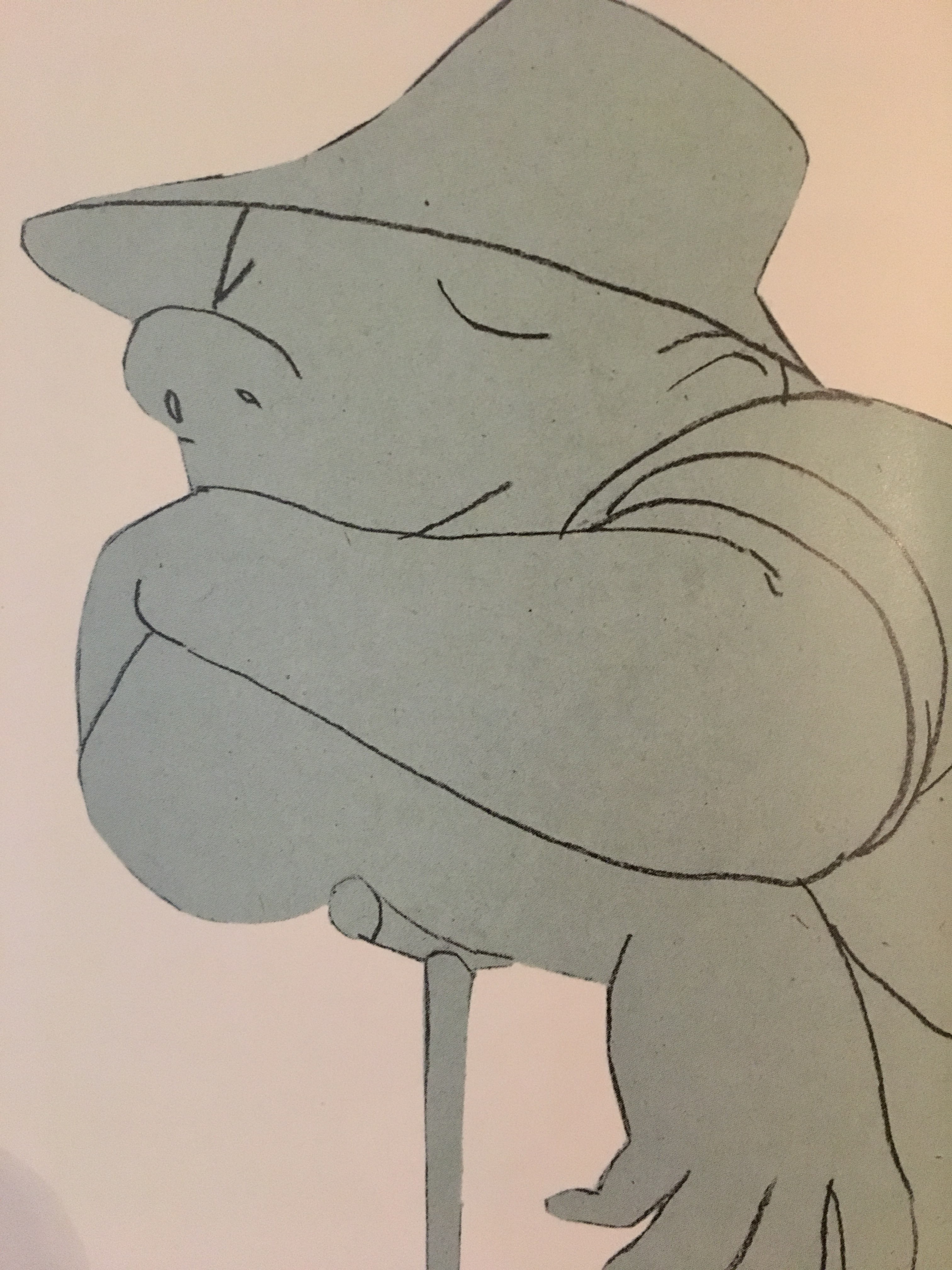 Was ist die große Frage, die Wolf Erlbruch hier stellt? ‚Warum bin ich auf der Welt?‘. Er formuliert sie nicht, lässt jedoch Menschen, Tiere und sogar einen Stein eine Antwort geben und zwar immer die, die den Antwortenden vielleicht am besten entspricht, zum Beispiel: