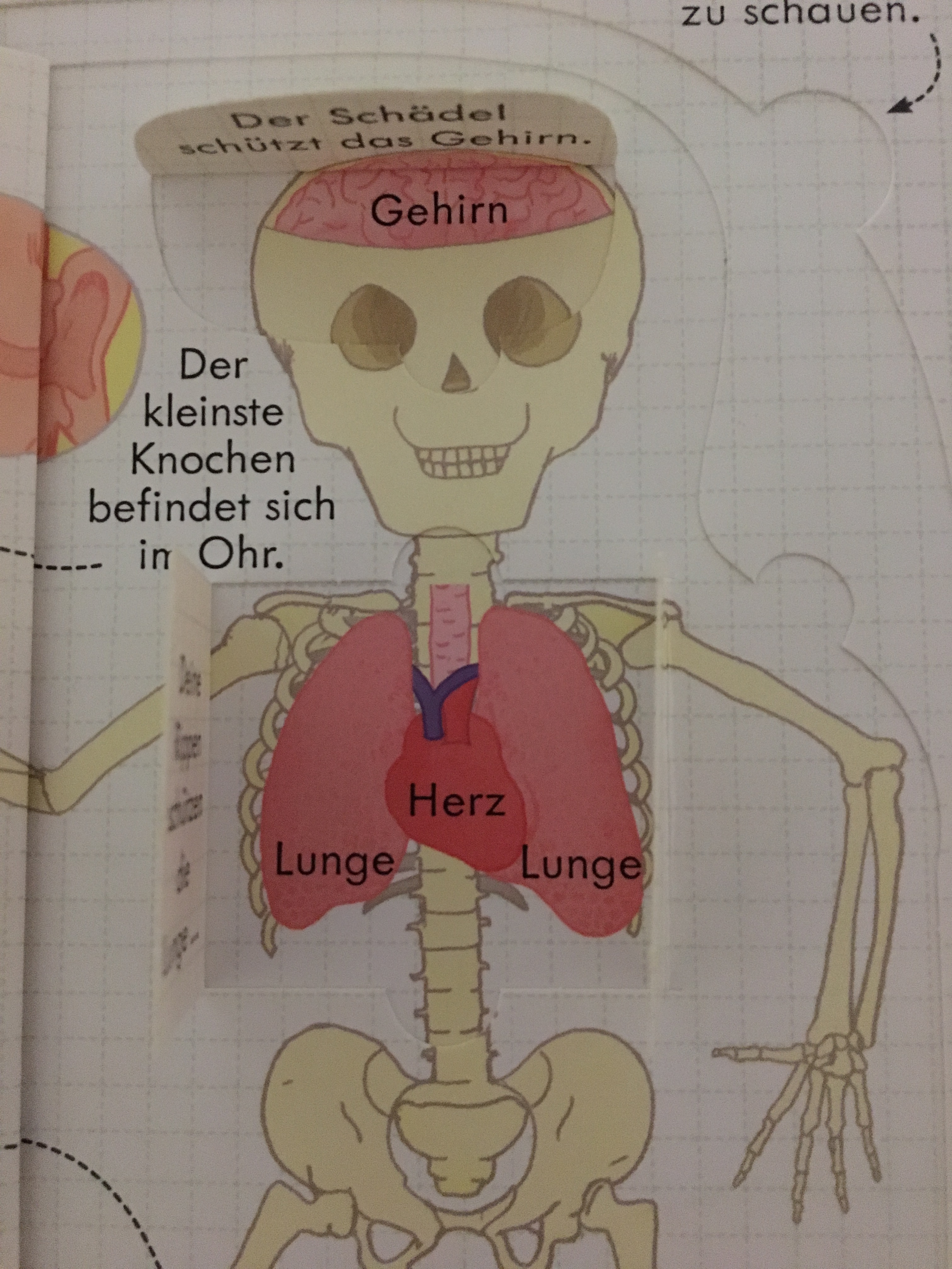 Faszinierend, was unser Körper alles kann, wie er funktioniert und wie die verschiedenen Bereiche zusammenarbeiten. Dieses Buch von Louie Stowell schafft es mit pointierten Texten zu den anschaulichen Bildern von Kate Leake dieses komplexe Thema einfach aufzubereiten. Zum Einstieg werden die verschiedenen Schichten des Körpers aufgedeckt: Haut, Muskeln und Knochen. Jede der folgenden Doppelseiten widmet sich einem Bereich ‚Essen und Verdauung‘, ‚Lunge und Herz‘, ‚Knochen und Muskeln‘, Das Gehirn‘, ‚Die Sinne‘ sowie ‚Wachsen und Heilen‘.