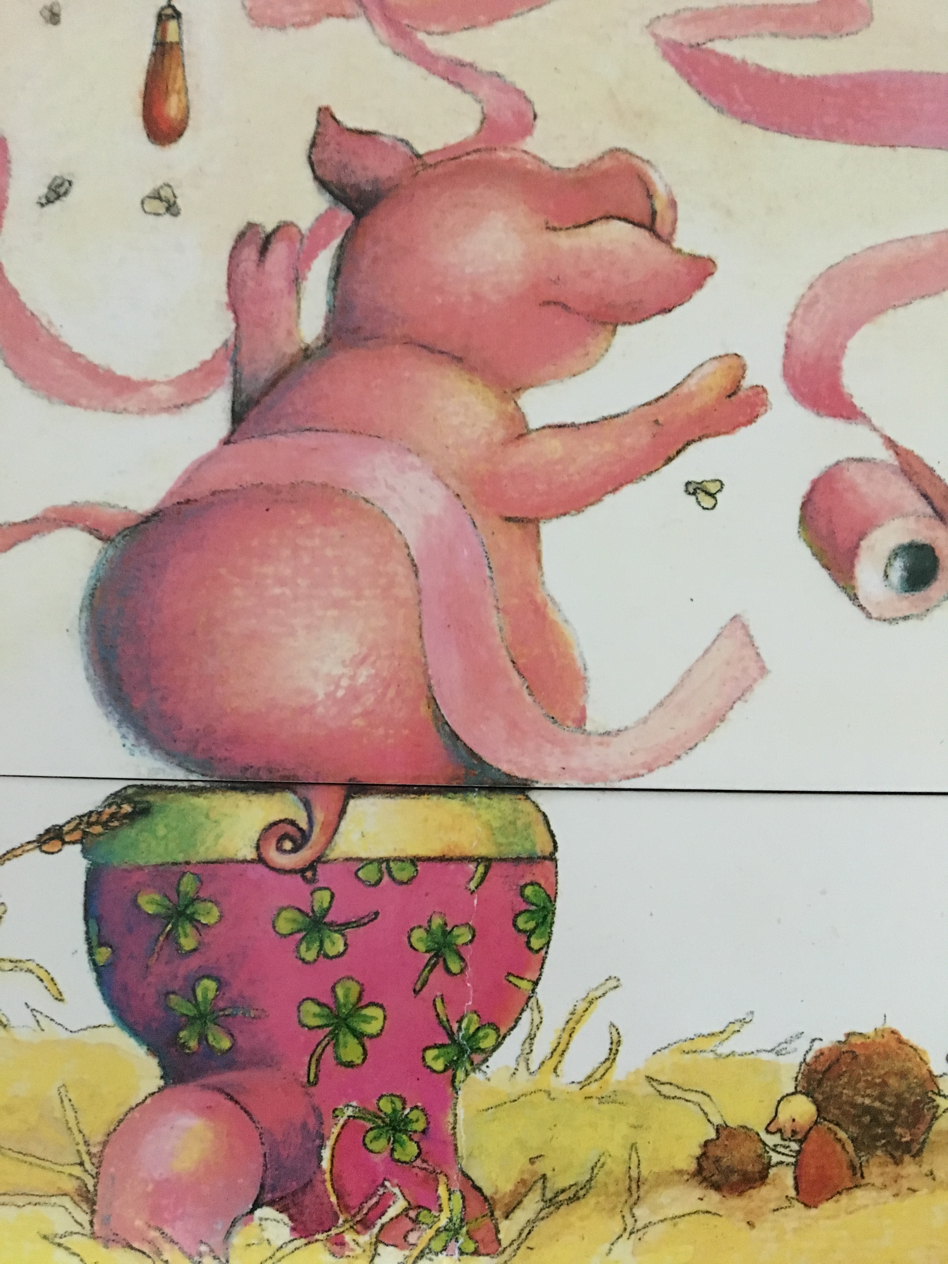 In dem ‚Klipp-Klapp-Buch‘ müssen Tieren ihren passenden Klos zugeordnet werden: Dem Elefant ein großes Trommelklo, dem Pinguin ein Eisblockklo dem Schwein ein Klo aus Stroh und ganz zum Schluß natürlich auch dem Kinderpo ein Töpfchen. Das ganze wird mit entsprcehdnen Reimen passend kommentiert.