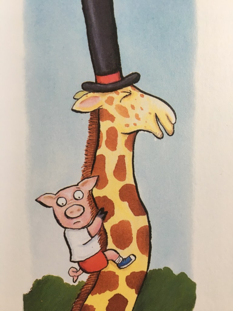 Zuerst setzt sich die Giraffe seinen tollen ‚Hoch-wie-ein-Turm-Hut‘ auf und um ihn zurück zu bekommen, muss er ihren langen Hals hinauf klettern. Ganz schön geschickt. Dann frisst das Krokodil seinen ‚Schnapp-und-ab-Hut‘ auf und Fritz Ferkel muss in sein Maul steigen, um ihn wieder zu bekommen. Ganz schön mutig. Den ‚Fang-den-Hut‘ klaut ihm die Affenbande und er muss geduldig warten, bis er den Hut bekommt. Ganz schön geduldig. Als er mit seinem ‚Klein-aber-fein-Hut‘ unterwegs ist, trifft er eine Maus. Der ist kalt und so schenkt Fritz Ferkel ihr seinen Hut. Ganz schön nett.