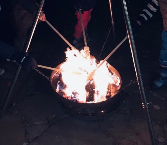 Das Highlight für alle Feuerwehrleute war aber das echte Feuer draußen und das Stockbrot, dass wir hier gemacht haben.