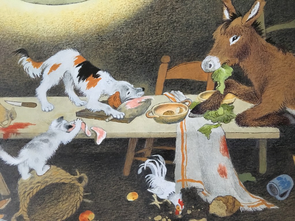 Dieses Märchen ist ein guter Einstieg und die Welt der Brüder Grimm, ist es doch verhältnismäßig wenig grausam und gruselig. Und es hat eine auch für Kinder einfach zu verstehende Moral. Die klassischen Bilder von Gerda Muller, der dieses großformatige Buch zum 90. Geburtstag gewidmet ist, illustrieren die Geschichte schön, ohne zu erschrecken.