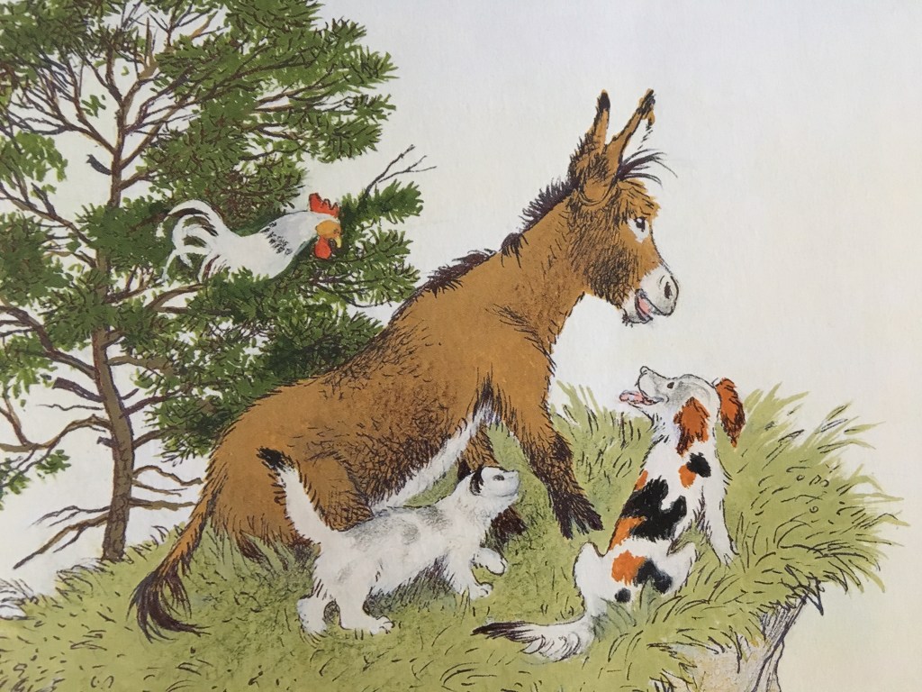 Dieser Märchen-Klassiker der Brüder Grimm erzählt die Geschichte von vier Tieren (Esel, Hund, Katze und Hahn), die sich aus ihrer misslichen Lage heraus entscheiden, gemeinsam nach Bremen zu gehen, um dort Stadtmusikanten zu werden. Damit ist dieses Märchen übrigens das einzige, das einen Stadtnamen im Titel führt. Wie die Geschichte weitergeht, ist bekannt: Die Vier entdecken ein Haus im Wald, in dem Räuber gemütlich essen, vertreiben sie mit allerlei Geschrei und als diese versuchen, später wieder in das Haus einzudringen, schaffen sie es mit vereinten Kräften, die Räuber endgültig in die Flucht zu schlagen.
