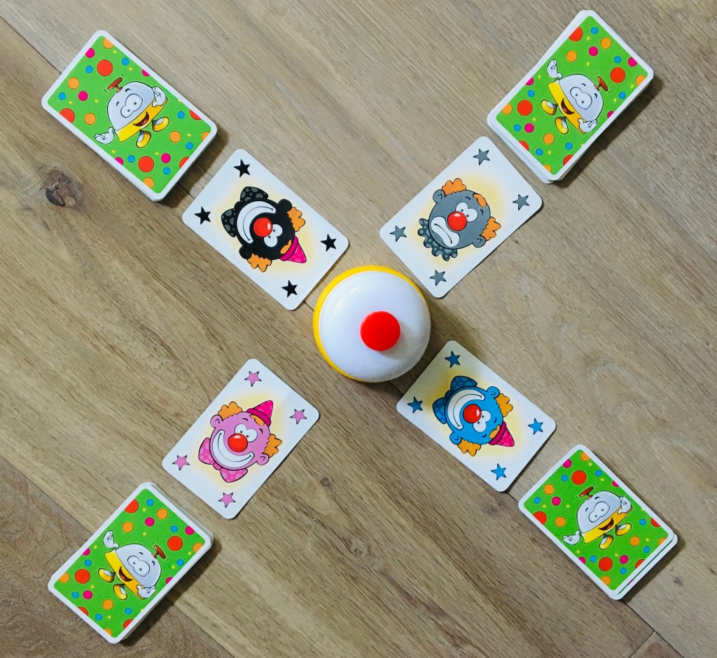 Alle Spieler haben einen Stapel vor sich liegen und drehen der Reihe nach die Karten um. Wann immer zwei gleichfarbige Clown-Gesichter zu sehen sind, muss ganz schnell auf die Klingel gedrückt werden. Der Schnellste bekommt alle offen liegenden Karten. Doch Achtung: Wer falsch klingelt, muss an seien Mitspieler je eine Karte abgeben. Wer keine Karten mehr hat, scheidet aus, bis nur noch zwei Spieler übrig bleiben. Wer von denen die meisten Karten hat, hat gewonnen.