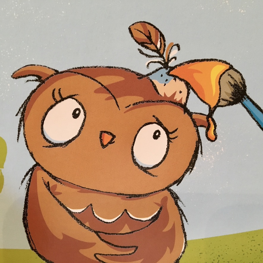 Oje, die Eule hat eine Beule – gut, dass die anderen Tiere ihr helfen: Die Schlange streichelt ihr die Wange, der Fuchs pustet, die Maus bringt ein Pflaster, der Bär verabreicht Honig. Und von Mama der Kuss zum Schluß macht das Eulenkind wieder gesund.