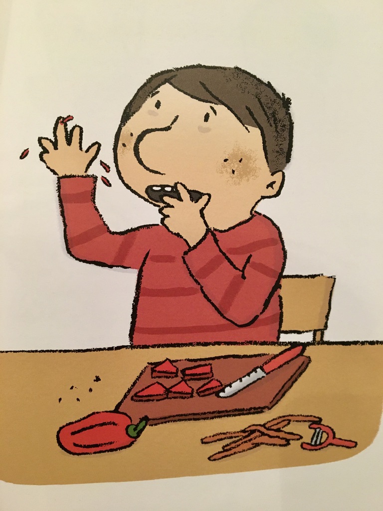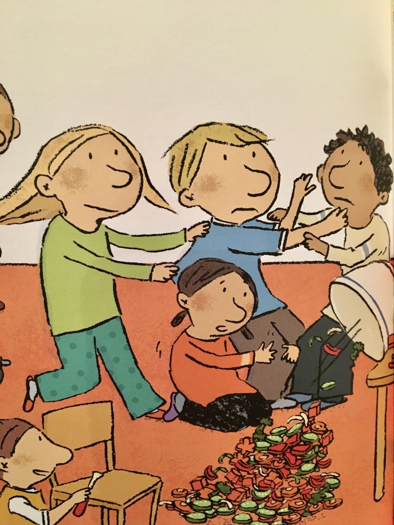 Die wilden Zwerge kochen eine Gemüsesuppe – klar das dies nicht ohne großes Durcheinander vonstatten geht: Konstantin schnitzt aus Möhren tolle Bilder, Alex schneidet sich in den Finger und Mara macht Nachtisch mit Senf und Ketchup…