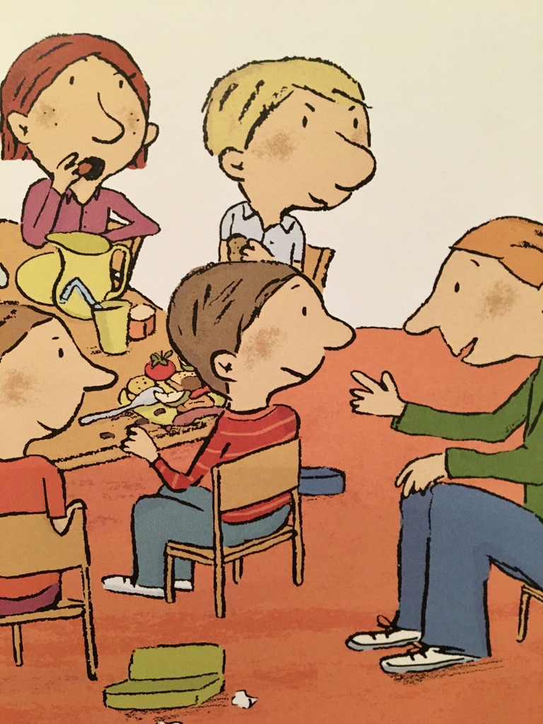 Es gibt noch einen tollen Kniff in diesem Buch: Zum Abschluss eines jeden Kapitels sprechen Anton und seine Mutter über den Tag. Und da wird nochmal sehr schon zusammengefasst, was wichtig war oder eben ‚die Moral von der Geschicht‘ dargelegt. Ein super Buch für alle Kindergarten-Kinder.. Mit Witz geschrieben und Humor gezeichnet.