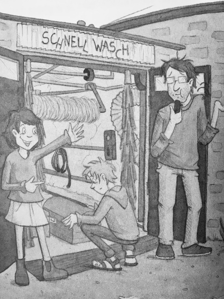 Dort angekommen erwarten die Familie zwei Überraschungen: Das Haus ist verfallen und liegt mitten in einem Naturschutzgebiet, an den Kreidefelsen der ‚Sieben Schwestern‘. Wer soll hier tanken und seine Autos waschen? Doch dann entdecken sie einen echten Schatz in der Waschanlage – Kisten voller Münzen. Justin beginnt das Geheimnis der Waschanlage zu erforschen und macht nachts wahrlich wundersame Entdeckungen. Der Fischer weiht ihn schließlich in das Geheimnis ein und die Familie erfährt, woher die vielen Federn und die Münzen in der Waschanlage stammen…