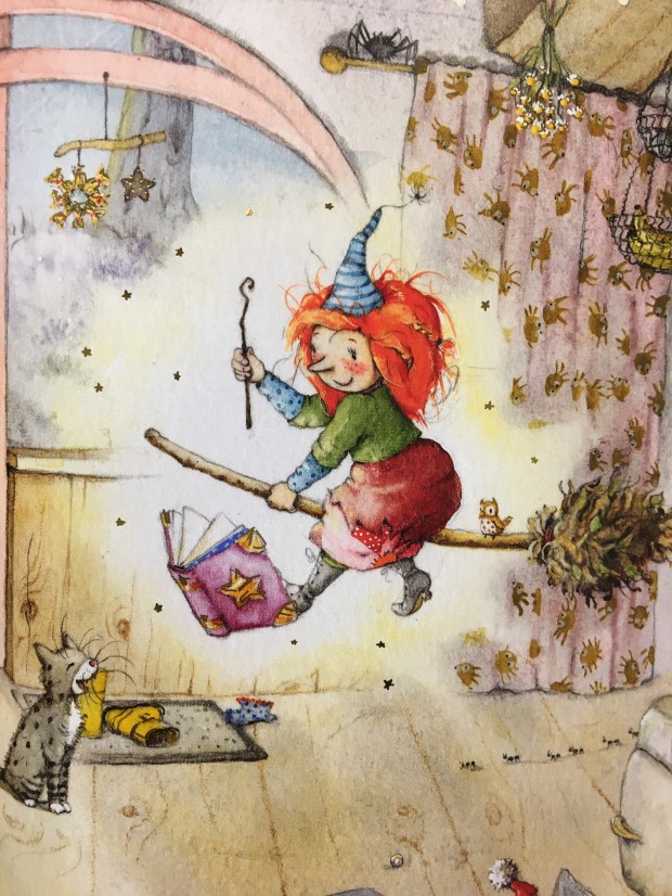 In der Reihe um Frida, der kleinen Waldhexe, gibt es auch ein Weihnachtsbuch. In dem bekommt Frida Besuch und hat dementsprechend viel zu tun. Das kommt uns ja irgendwie bekannt vor… Und obwohl Frida hexen kann, muss auch sie einiges vorbereiten. Plätzchen werden gebacken, der Tisch schön gedeckt und ein Weihnachtsbaum aufgestellt und geschmückt. Und ausserdem muss ja auch aufgeräumt werden!