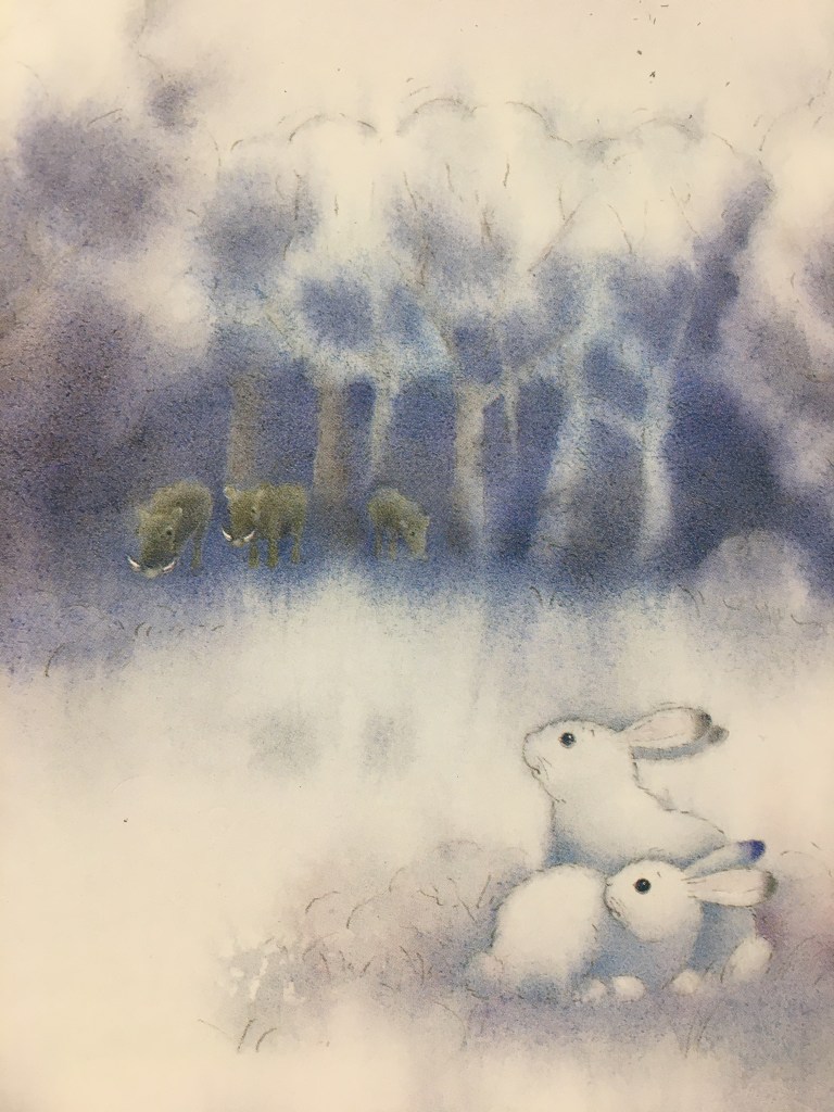 Das ist im Winter natürlich nicht so einfach wie im Sommer, wenn überall Beeren zu finden sind. Plötzlich taucht ein Falke auf und es wird gefährlich. Hoppel versteckt sich im Dickicht und seine Mama schafft es, den Falken abzulenken. Dann treffen sie noch ein Tier, das Hoppel nicht kennt, ein Reh und finden schließlich auch etwas zu fressen. Ein ganz schön langer und aufregender Tag geht zu Ende und Hoppel denkt beim Einschlafen noch an den Frühling.
