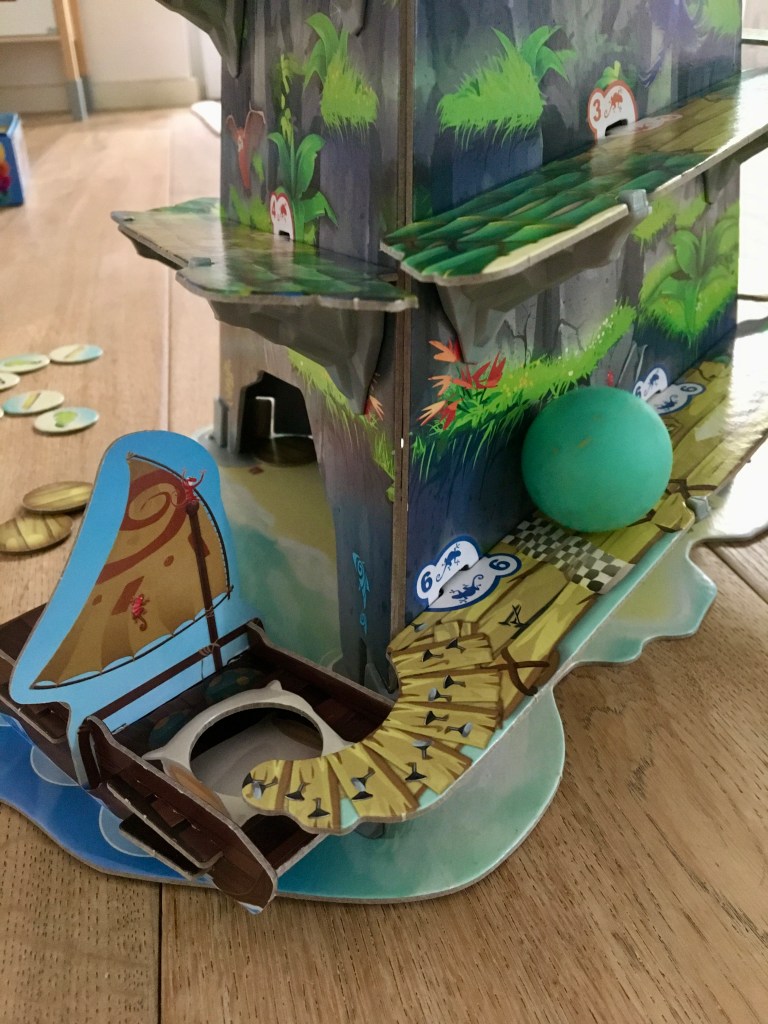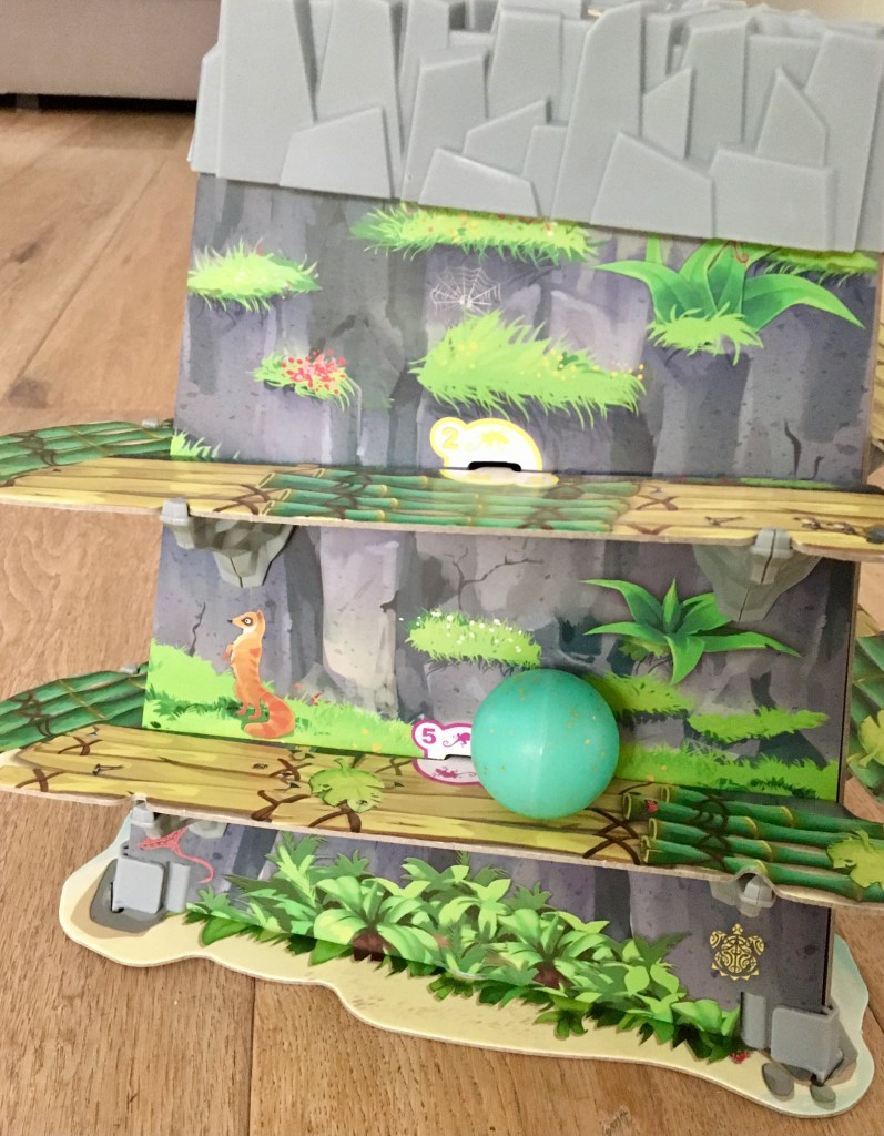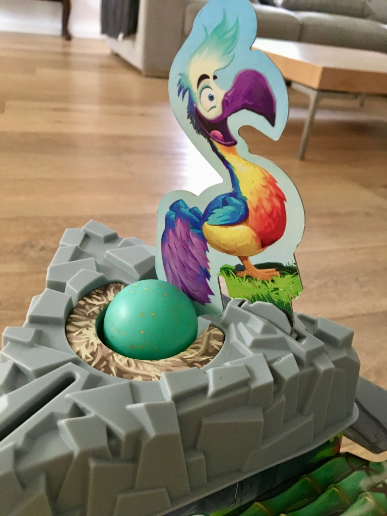 Was uns an Spielen ja immer besonders gut gefällt, ist, wenn wir gemeinsam etwas erreichen müssen. Bei diesem Spiel haben alle Spieler zusammen die Aufgabe, das Ei von Dodo zu retten. Dodos sind vom Aussterben bedrohte Vögel und bauen ihr Nest leider ganz weit oben auf dem Berg. Blöd, wenn das Ei (die Kugel) dann ins Rutschen gerät…