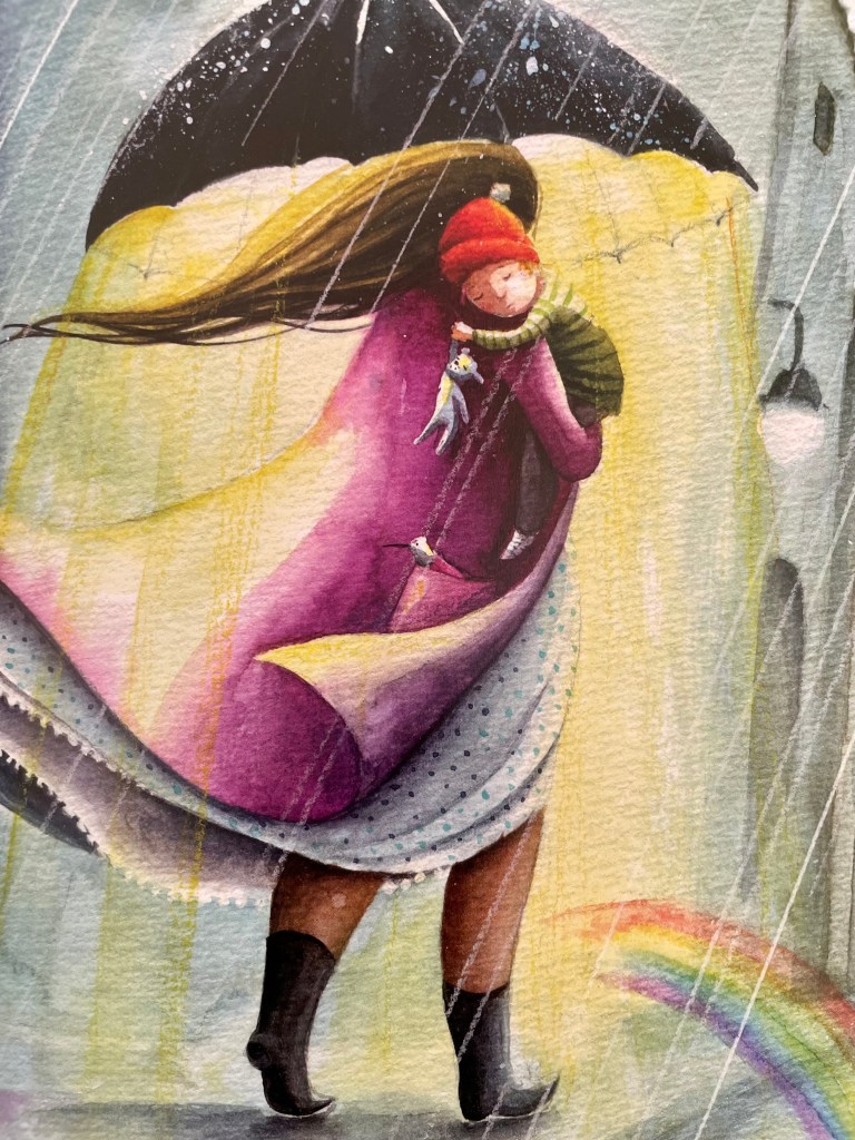 Wer das ist? Das ist eigentlich egal. Das Gefühl ist entscheidend und das macht das Buch wunderbar deutlich. Kerstin Hau hat mit wenigen Worten Gedanken eingefangen, die rund um dieses Gefühl entstehen. Die Sicherheit, die Freundschaft, die Hilfe, die Sicherheit, die Geborgenheit, der Trost, die Kraft und die Hoffnung, die einfach da sind. Denn niemand ist allein, wenn er oder sie mit offenem Herzen durch die Welt geht.