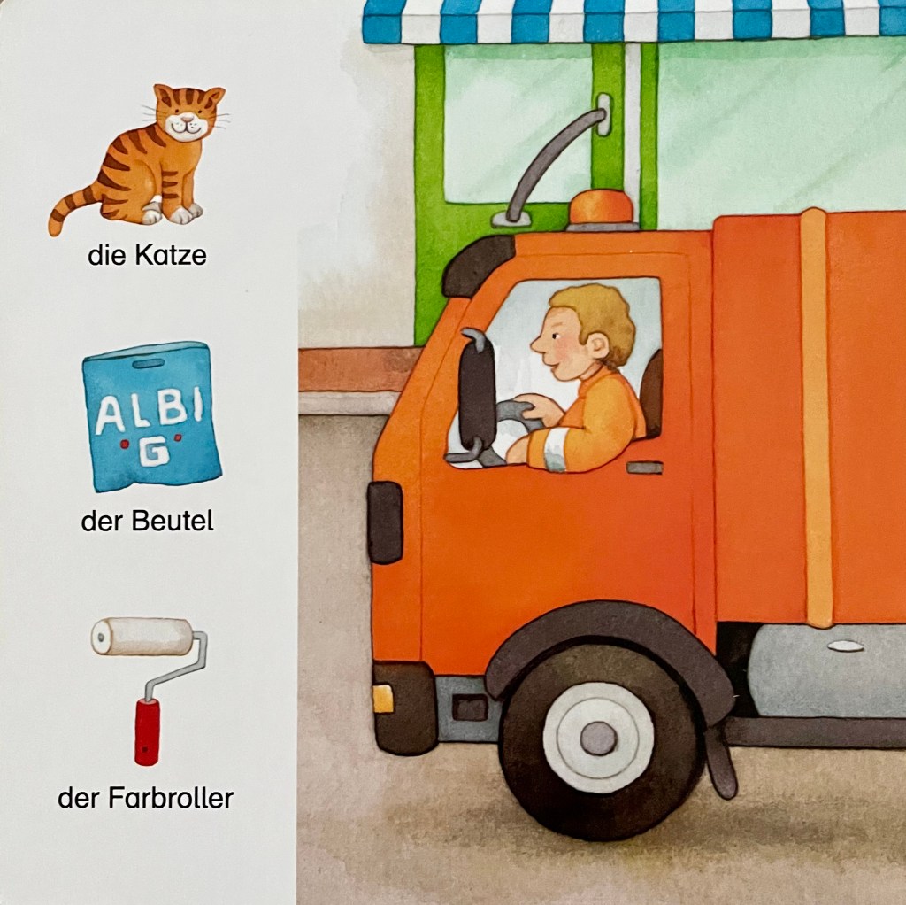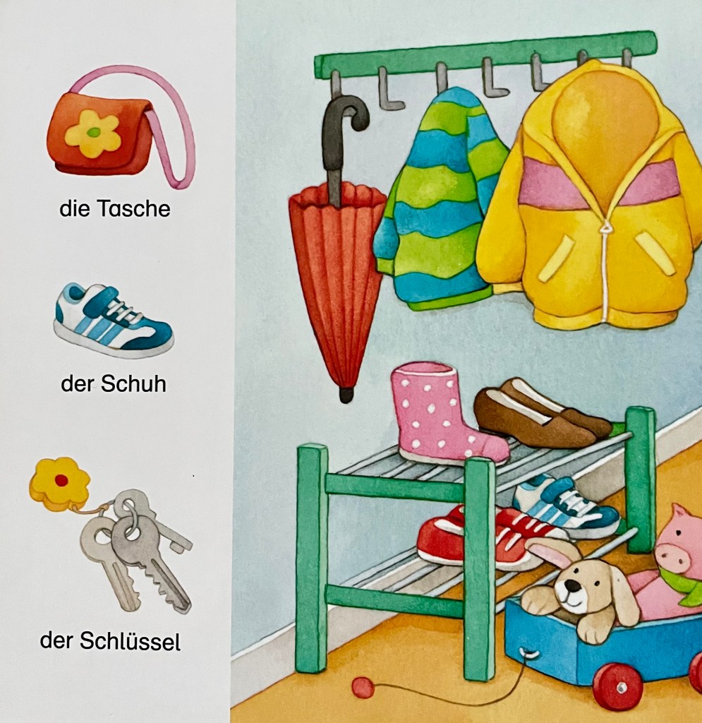 Ein absolutes Lieblingsbuch für unsere kleinen Kinder war dieses klassische Wörter-Lernbuch. In verschiedenen Kapiteln werden typische Szenen und Begriffe illustriert und beschrieben. Zuerst auf dem Bauernhof, dann der Zoo, Zuhause und zum Schluß viele Fahrzeuge.