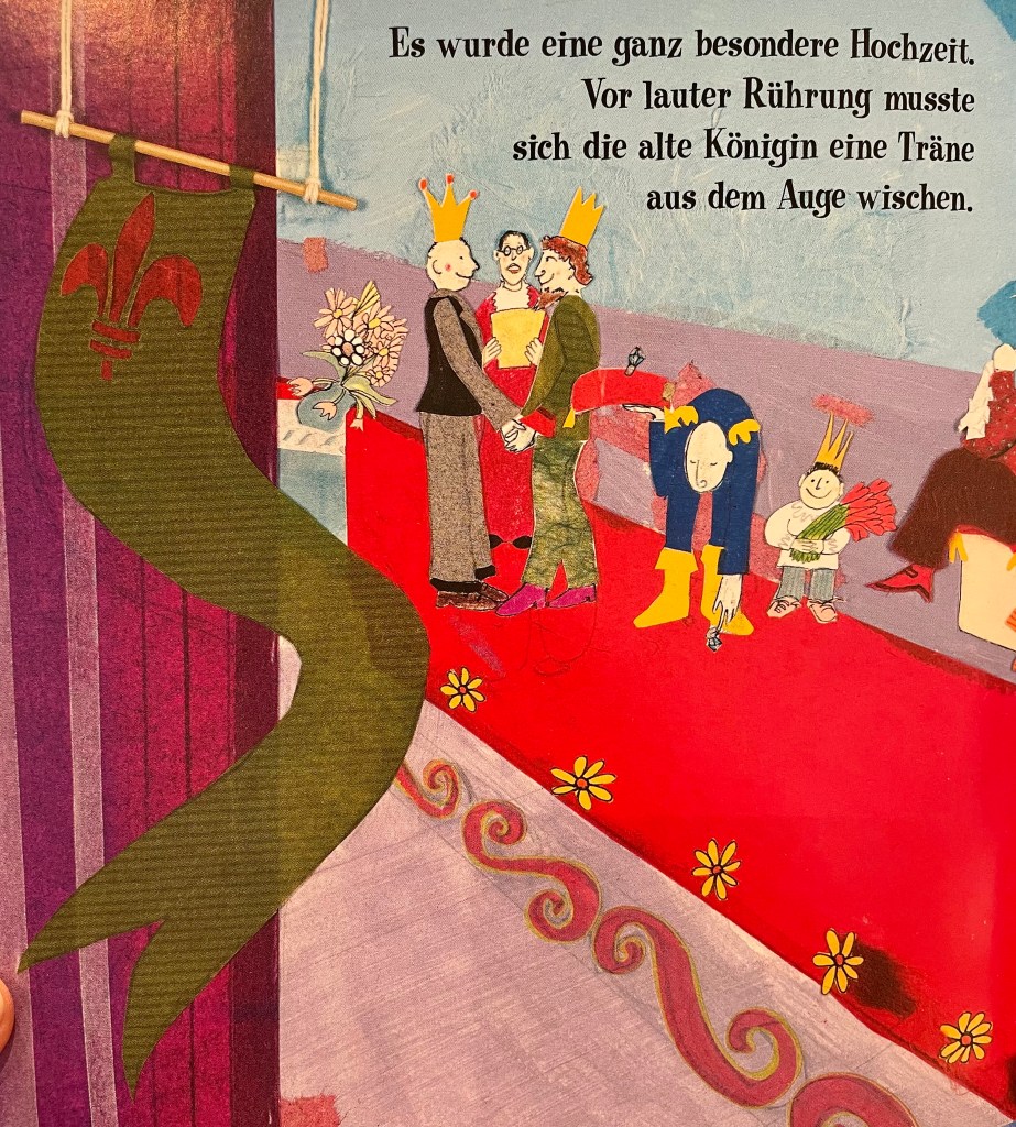 Was ich toll finde an dem Buch: Es gibt gar keine Diskussion, ob der Prinz den Prinzen heiraten darf, sondern einfach eine ‚ganz besondere Hochzeit‘. Also keine Probleme, sondern Normalität, dass zwei Männer heiraten.