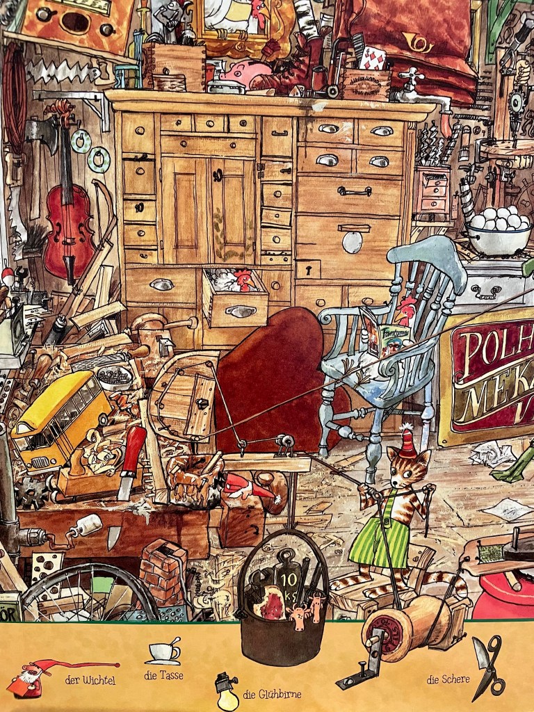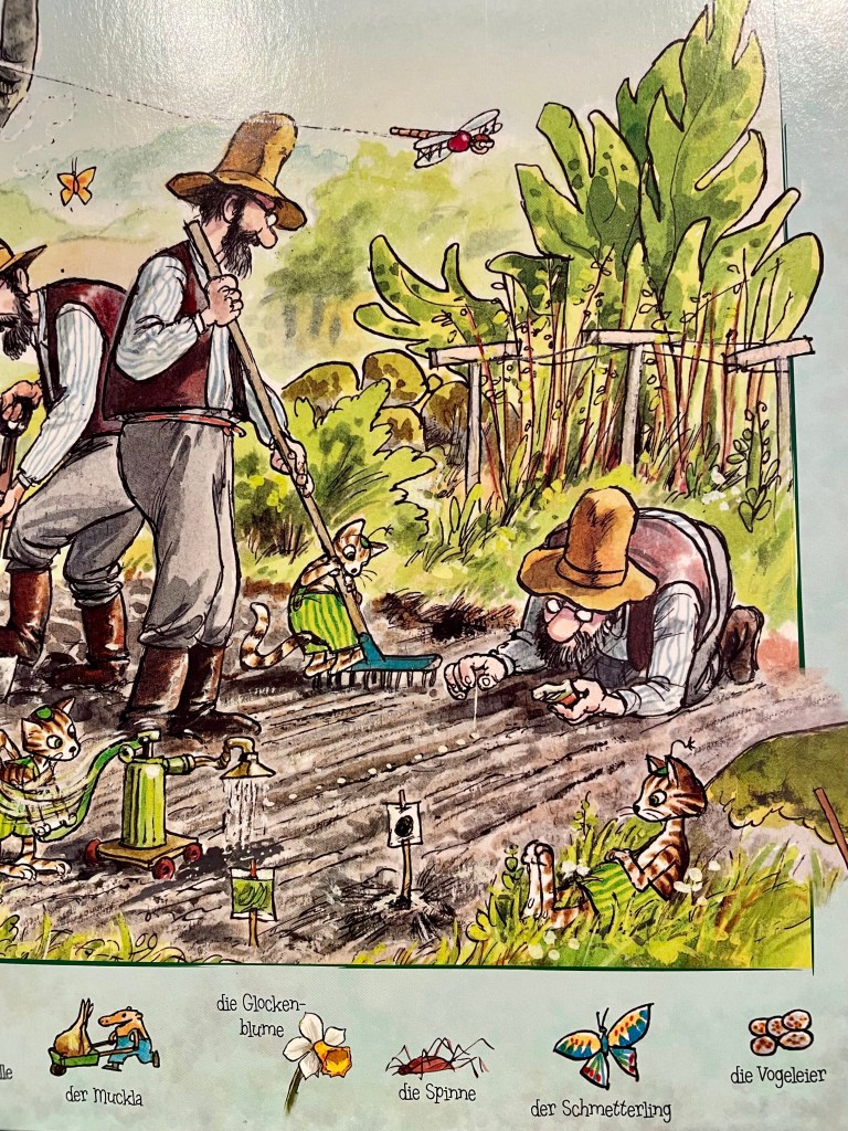 Die klassischen Geschichten der beiden liebenswerten und ideenreichen Protagonisten sind eher etwas für ältere Kinder, da sie oft länger und komplexer sind. Die meist großformatigen Illustrationen von Sven Noirdquist sind immer sehr einfalls- und detailreich. Sie eignen Sie sich wunderbar als Wimmelbilder, in denn fast unendlich viel zu entdecken ist. Hilfreich beim Suchspiel mit den Kleinen sind einzelne Bildelemente, die am Rande separat dargestellt und benannt sind. So wird neben dem Suchen auch das Lernen vieler Wörter gefördert.